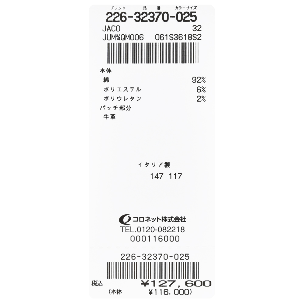: 本体:コットン92% ポリエステル6% ポリウレタン2%