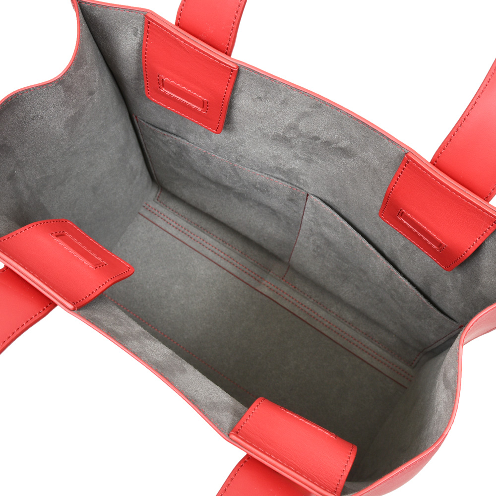 外装は2枚のレザーにすることで縫製面を少なくし、革をカーブさせることで美しく成型。ハンドルのカットや厚み、ステッチの入れ方などミニマルな中に洗練された美意識を感じる仕上がりに。