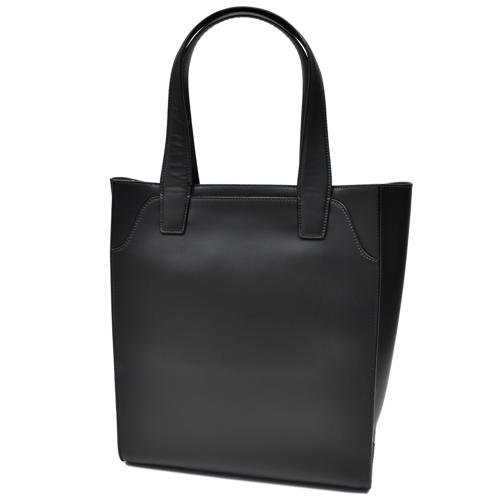 縦型のトートは荷物を入れてもそこまで広がらないので、横長タイプと比べスタイルをスッキリと、スマートに見せることが可能ですね。