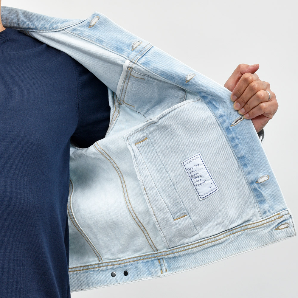 デニムへの加工が特徴の1つでもあるJACOB COHEN(ヤコブコーエン)のラインナップの中でも、全体にブリーチ加工をしっかり施したやや珍しいタイプの1着。定番のミドルオンスながらやや薄手とも言える11オンスなのでインナーを調整することで幅広い季節で活躍できるかと思います。