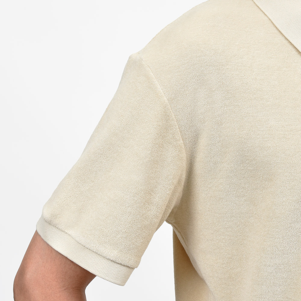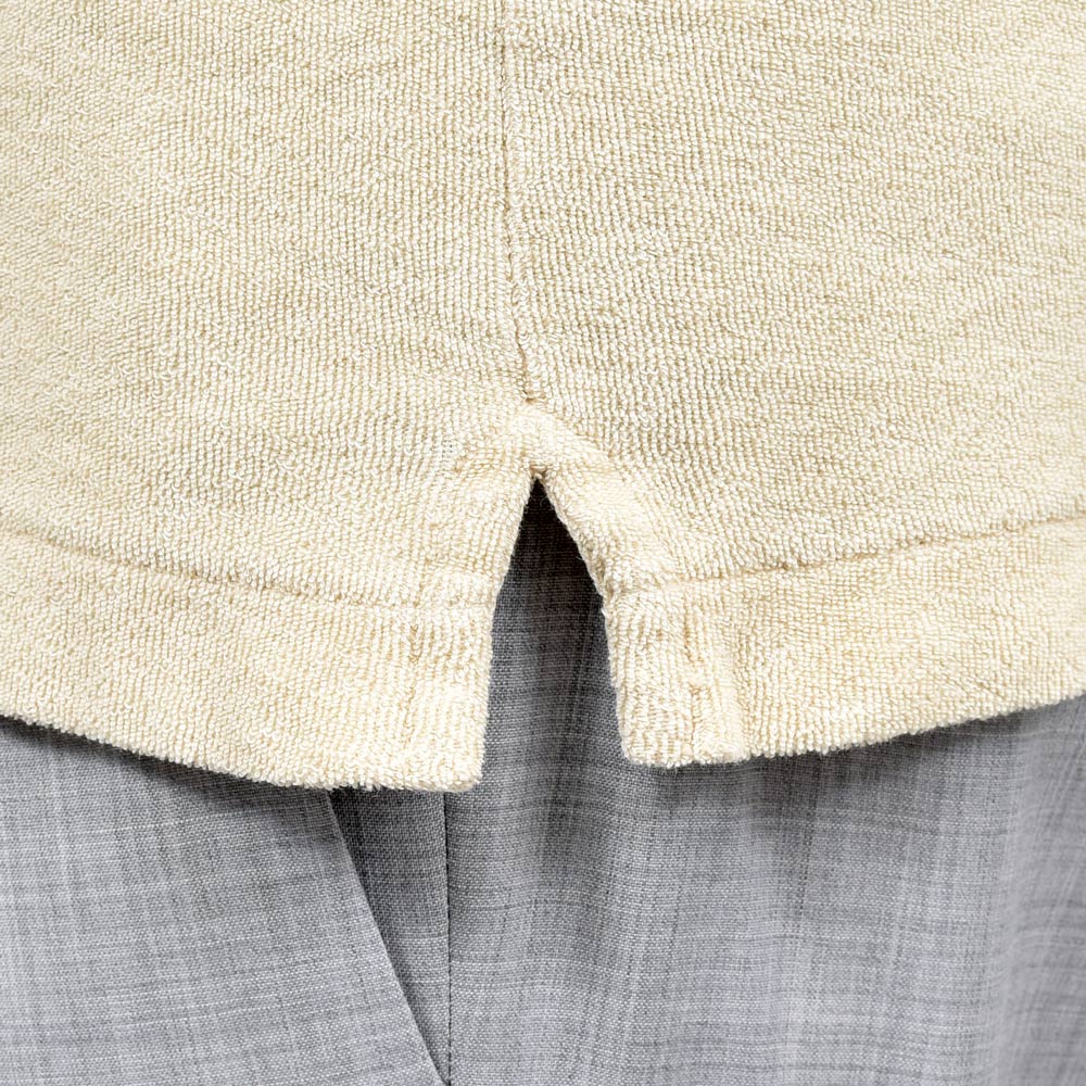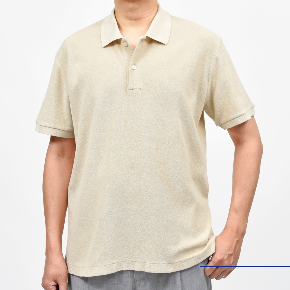 柔らかいタオルのような肌触りが特徴的なパイル生地を使用していまして、暑い季節でも快適な着心地である点は非常に嬉しいところ。淡いトーンのカラー展開も上品で、洗練された印象を与えてくれます。