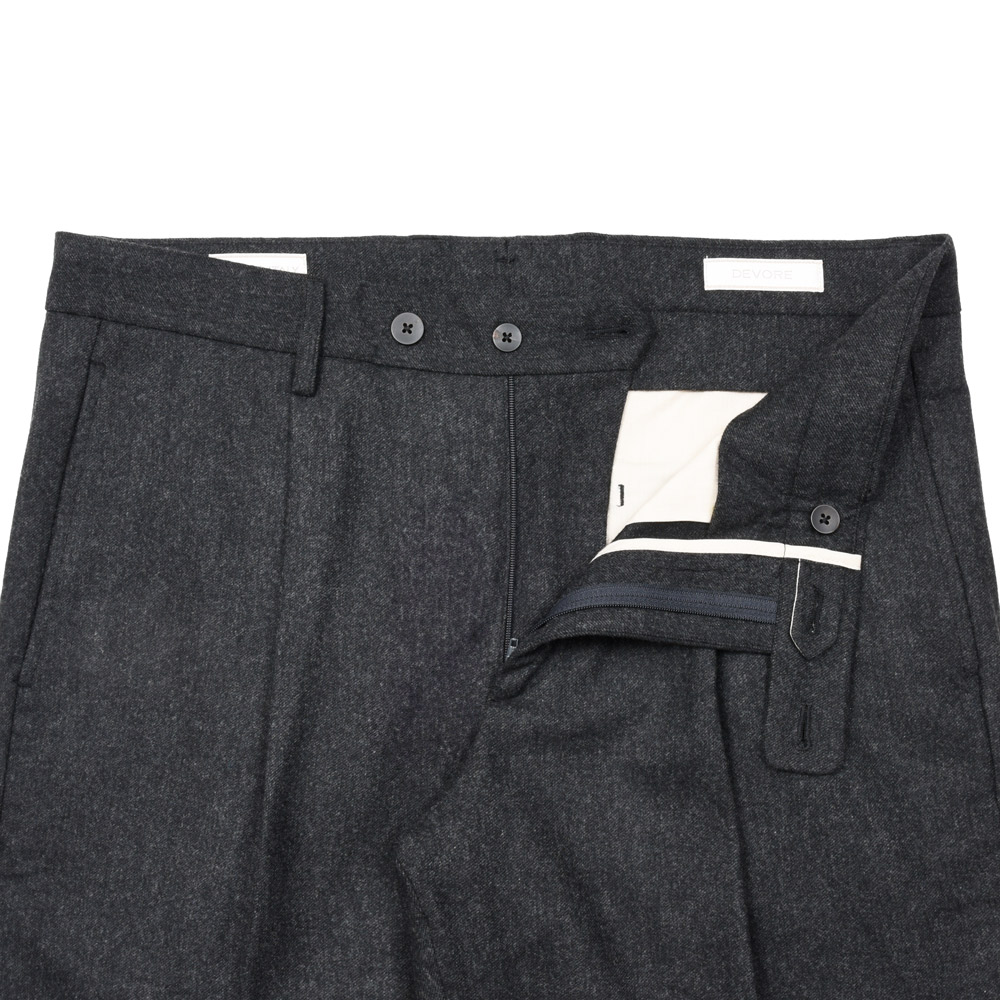 長年着続けて馴染んできたフランネルの風合いが表現されており、ブリティッシュワーク的なムードを漂わせつつやっぱりイタリア的なクリーンさが備わっている、DEVOREならではの仕上がりになっています。
