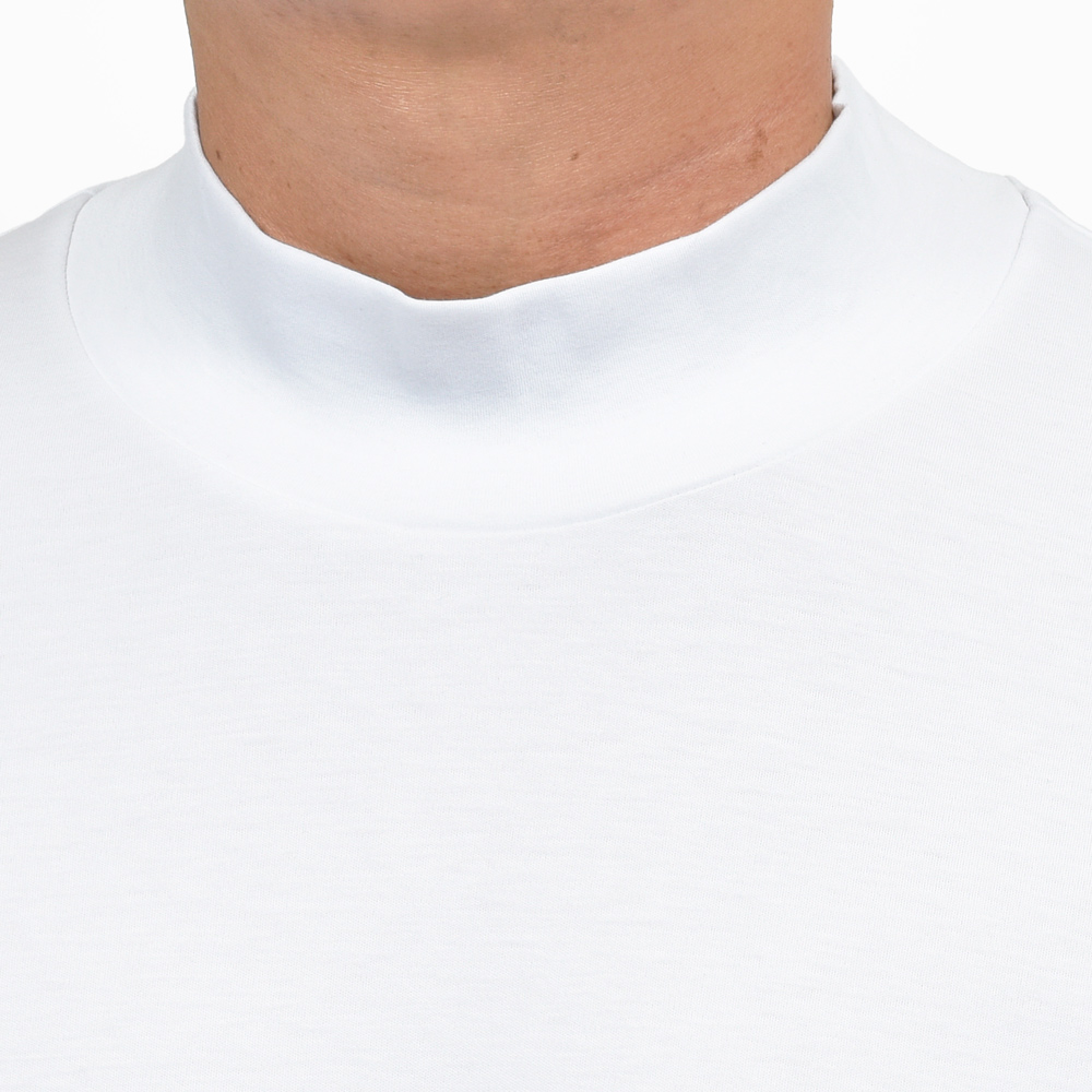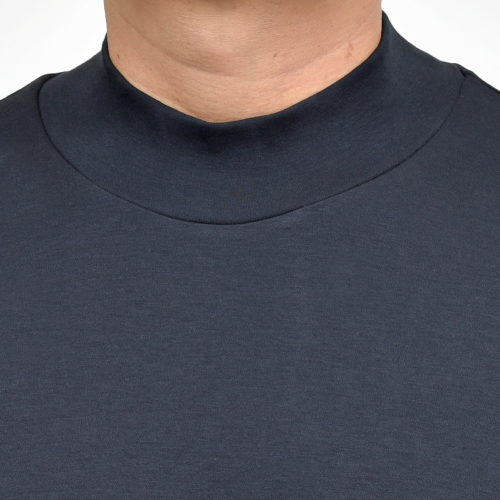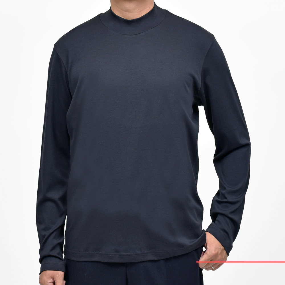 キュッと首が詰まったクルーネック・・・にほど近いくらいのモックネックです。最近はカットソーのモックネックといえばこのくらいが多いと思います。