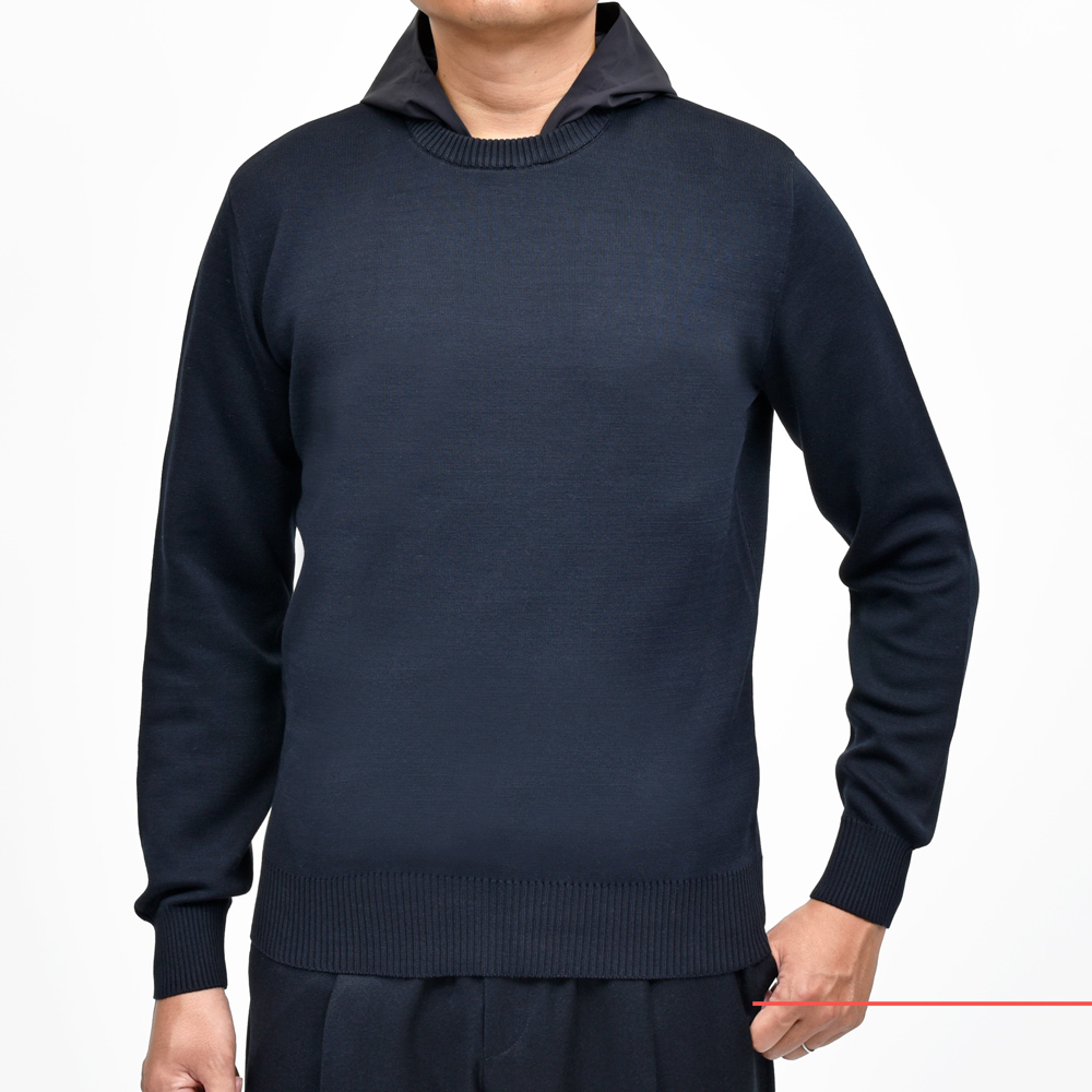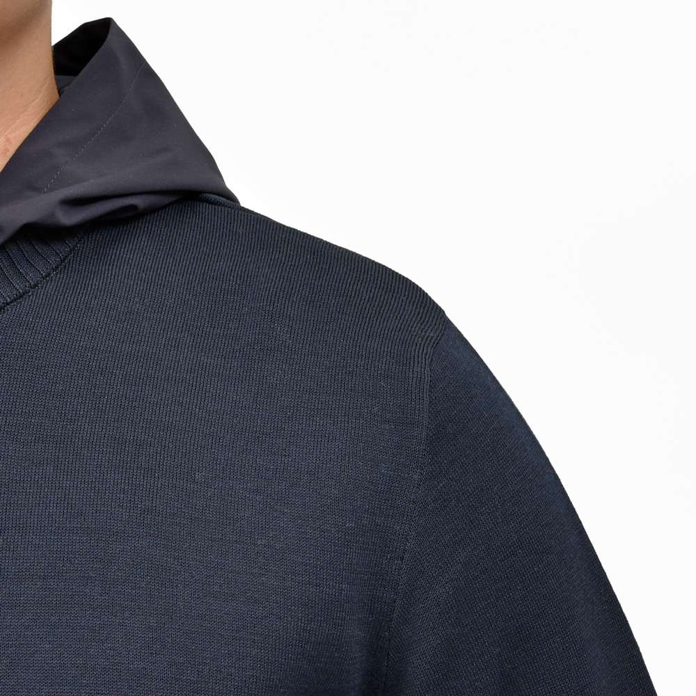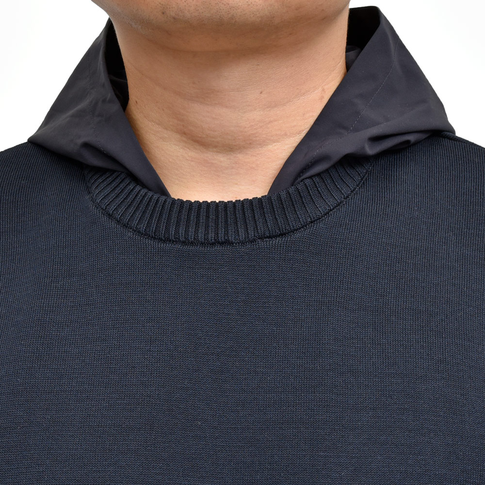 RESORTリゾート ハイゲージコットンクルーネック×ナイロンフーディープルオーバーニット MG00027UR-72111
