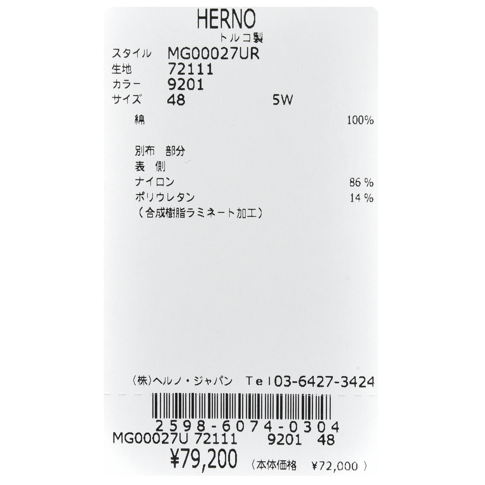 HERNOならではということもないですが、とはいえHERNOらしい素材使いですね。ボディと共生地ではなく、敢えてナイロンを用いてスポーティさを高めているところがポイントでしょうか。