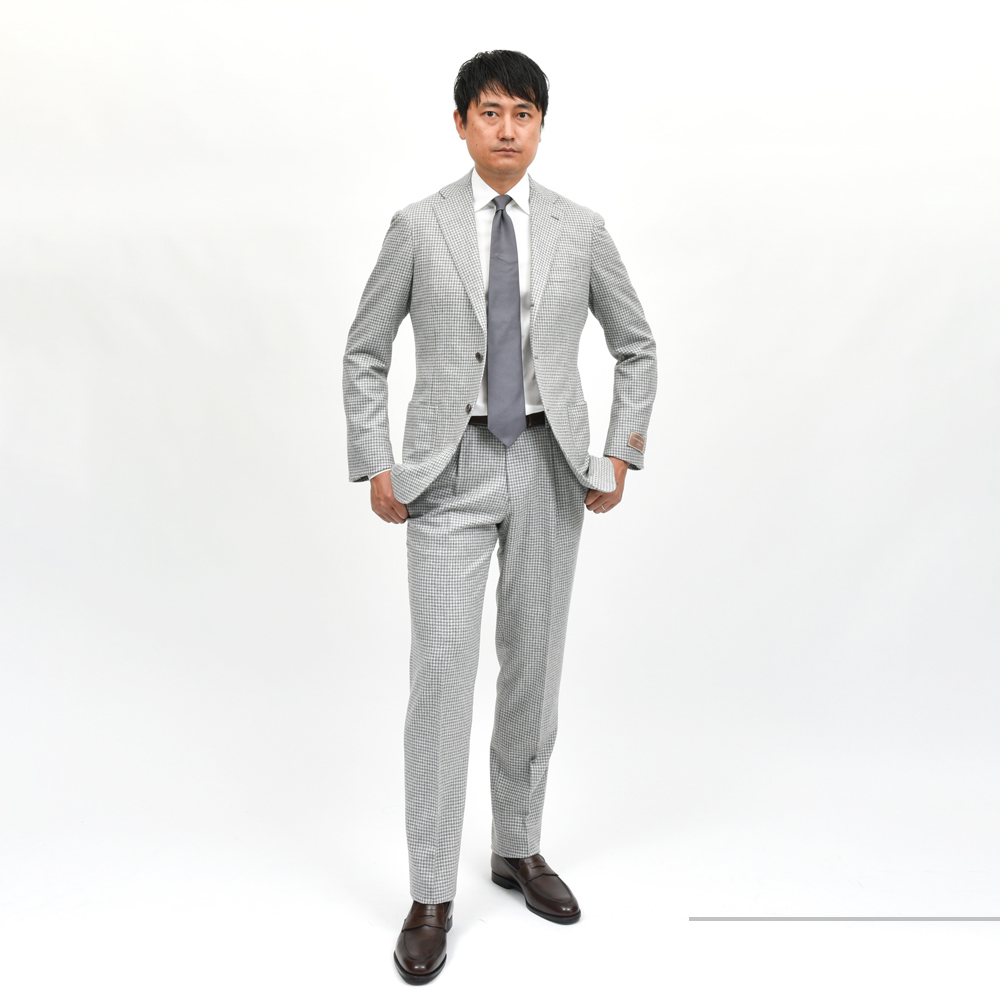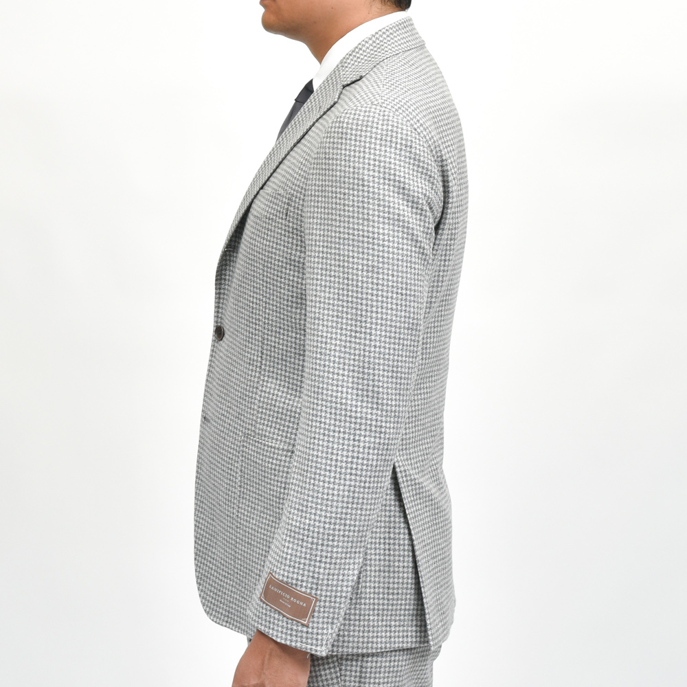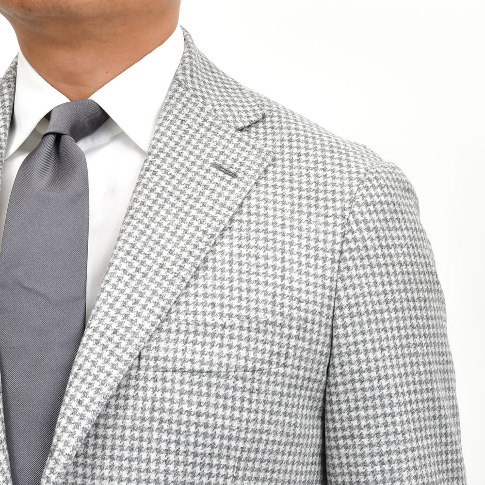 LANIFICIO ROGNA(ラニフィーチョ・ローニャ)社製の生地を使用した、gujiオリジナルのライトグレーハウンドトゥースジャケット。