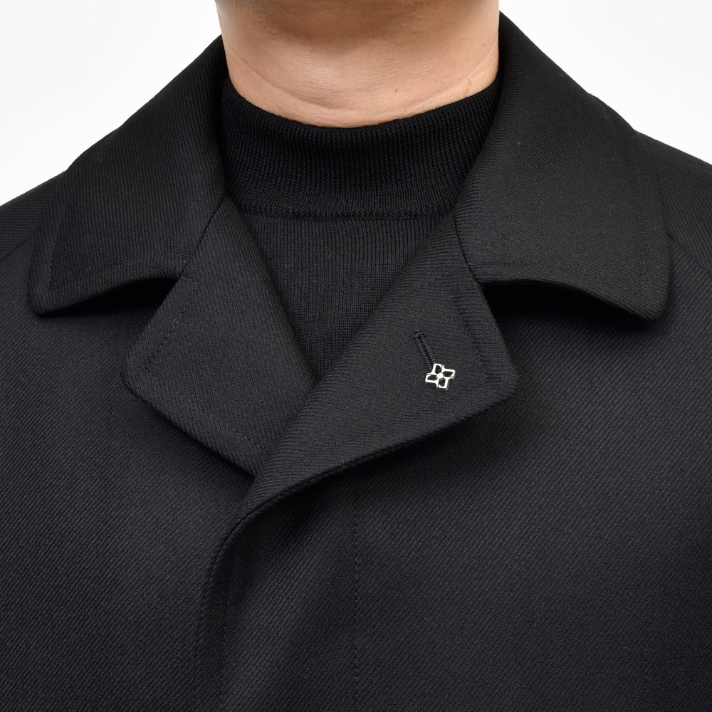 こちらは上質なウールをきっちり打ち込んで織り上げたツイル生地で、シャキッとしつつしなやかさも併せ持ちますのでオンオフ兼用のコートとして広く活用頂けるはずです。
