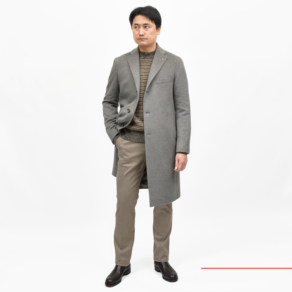 TAGLIATORE(タリアトーレ)では定番のアイテムとなりました、guji別注モデルのシングルチェスターフィールドコート、2025F/Wシーズンからほんの少し修正を施しました。