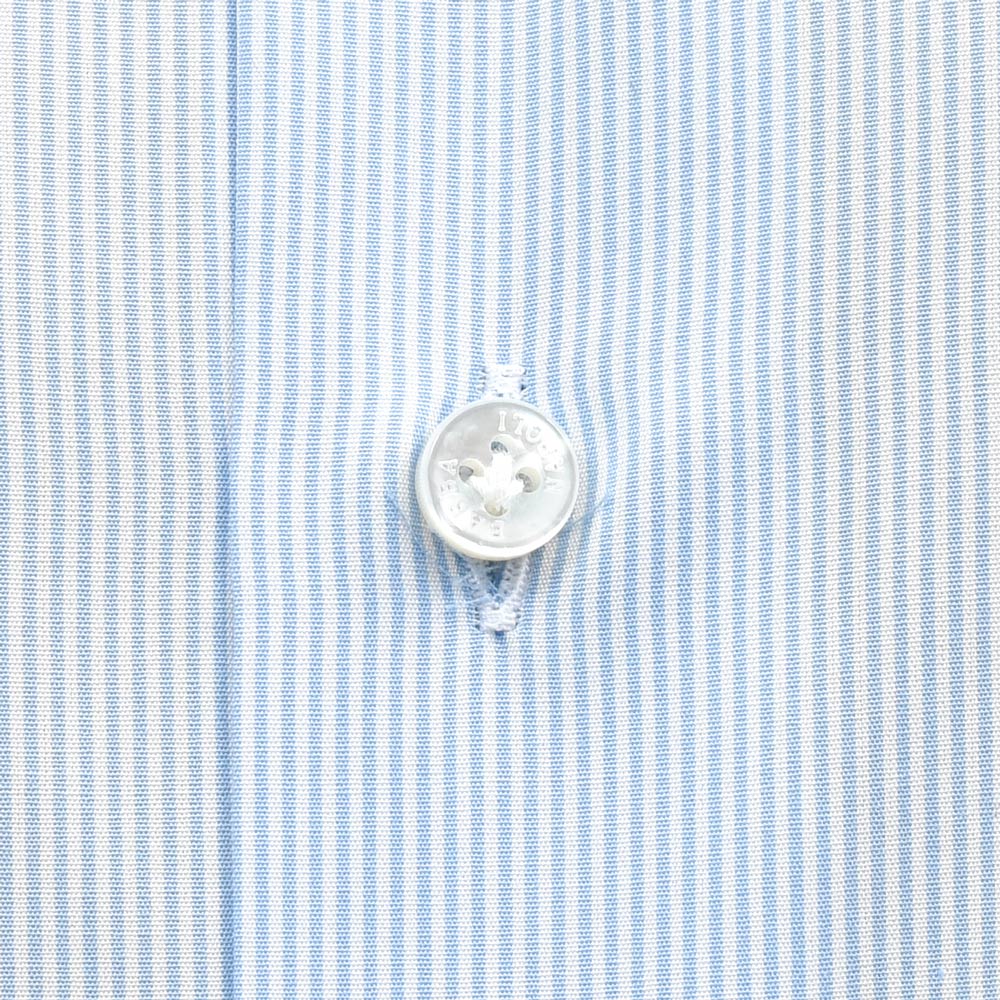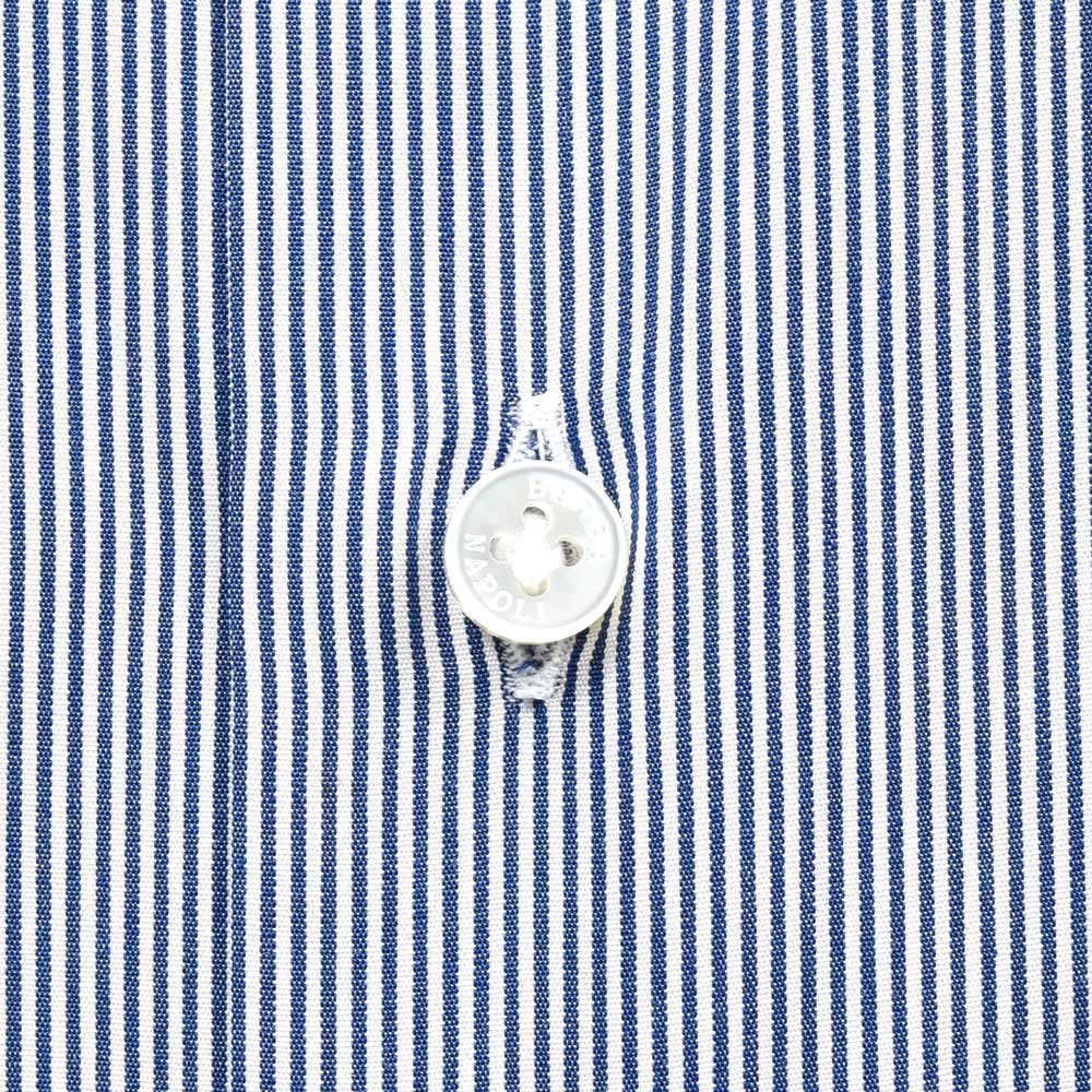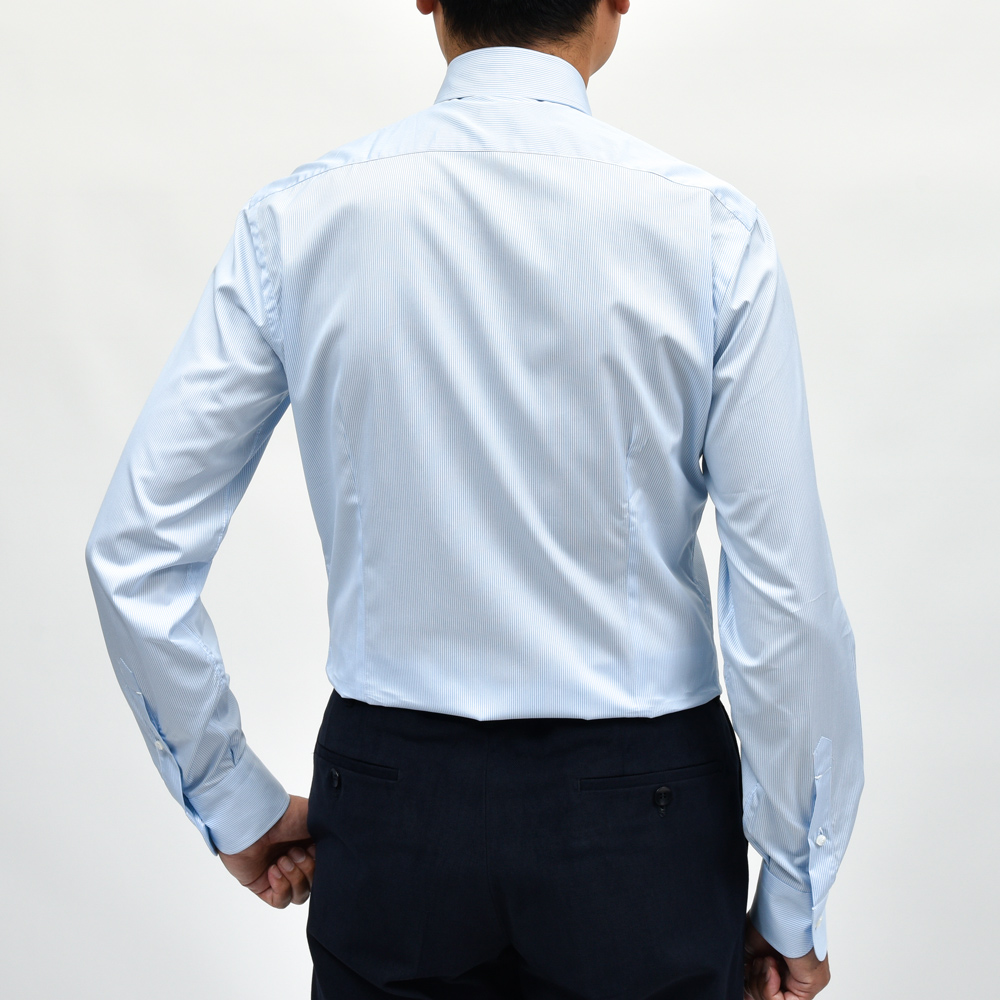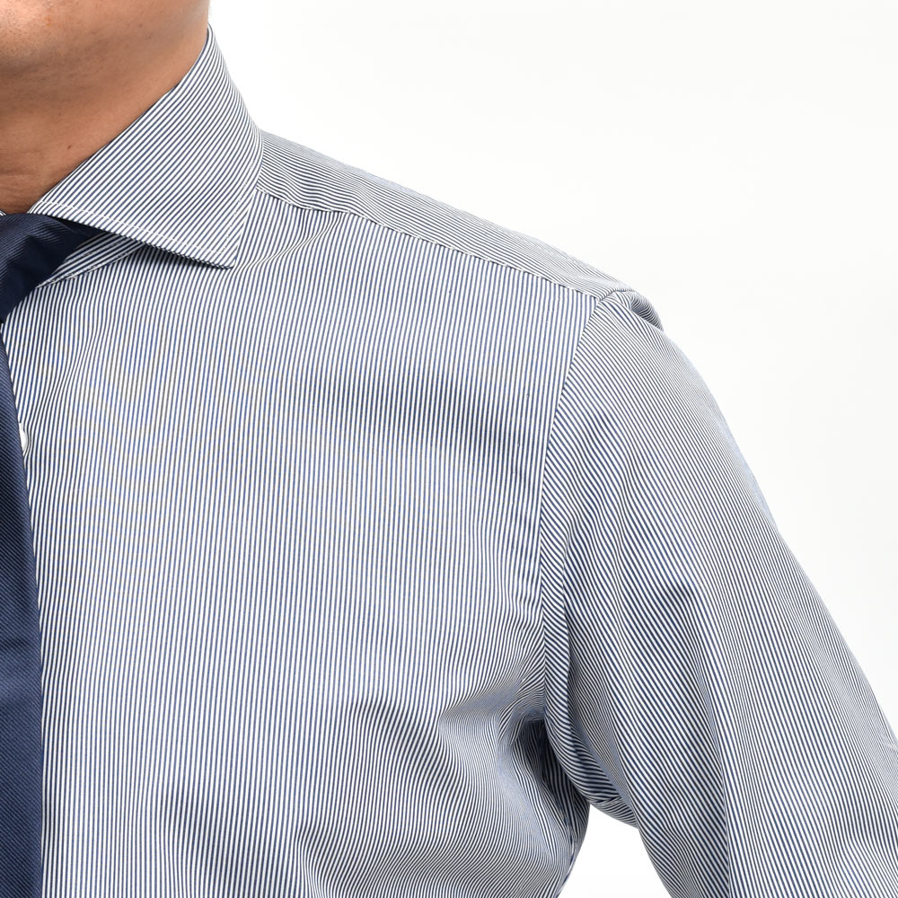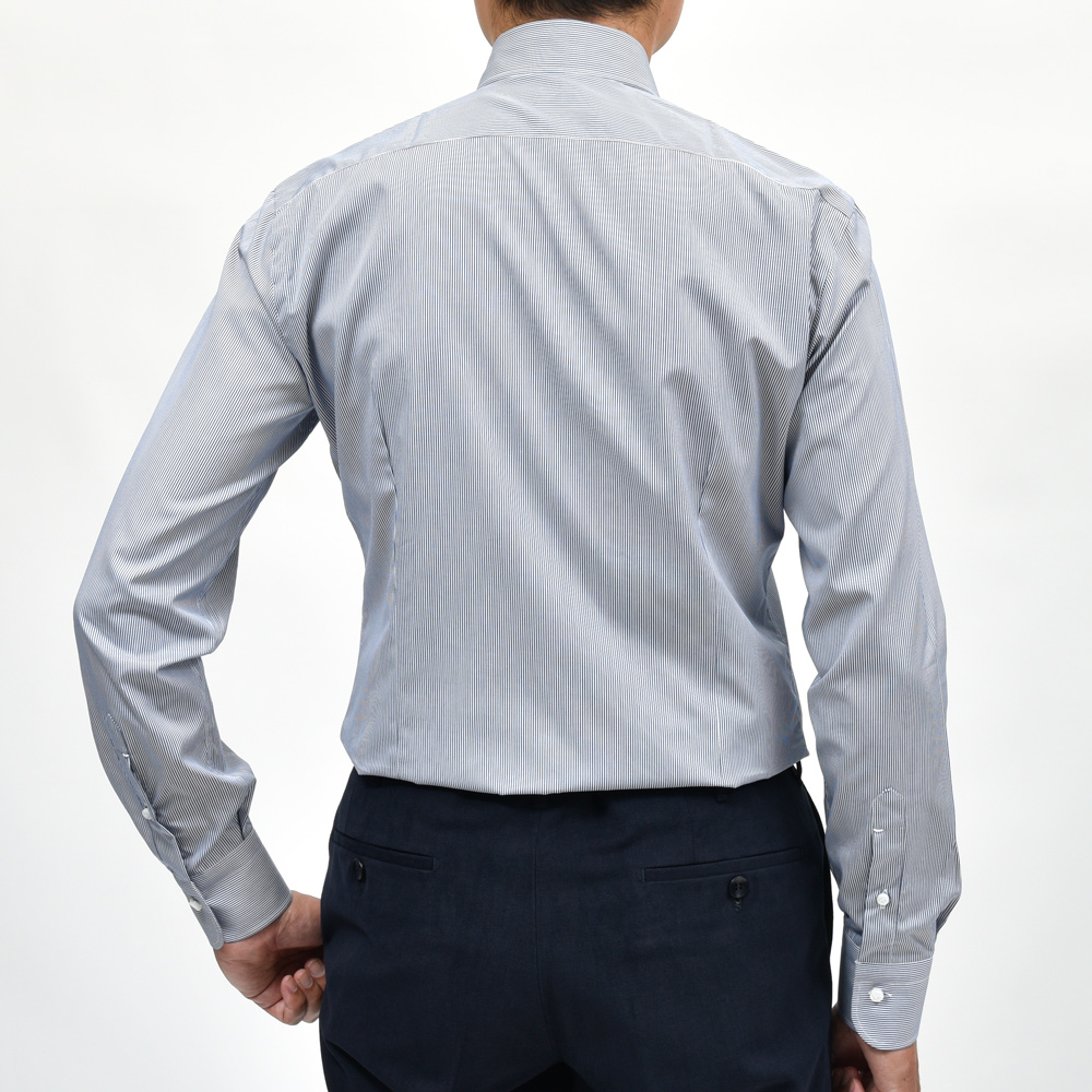 イタリアのドレススタイルには欠かすことのできないブルー系のストライプドレスシャツ。