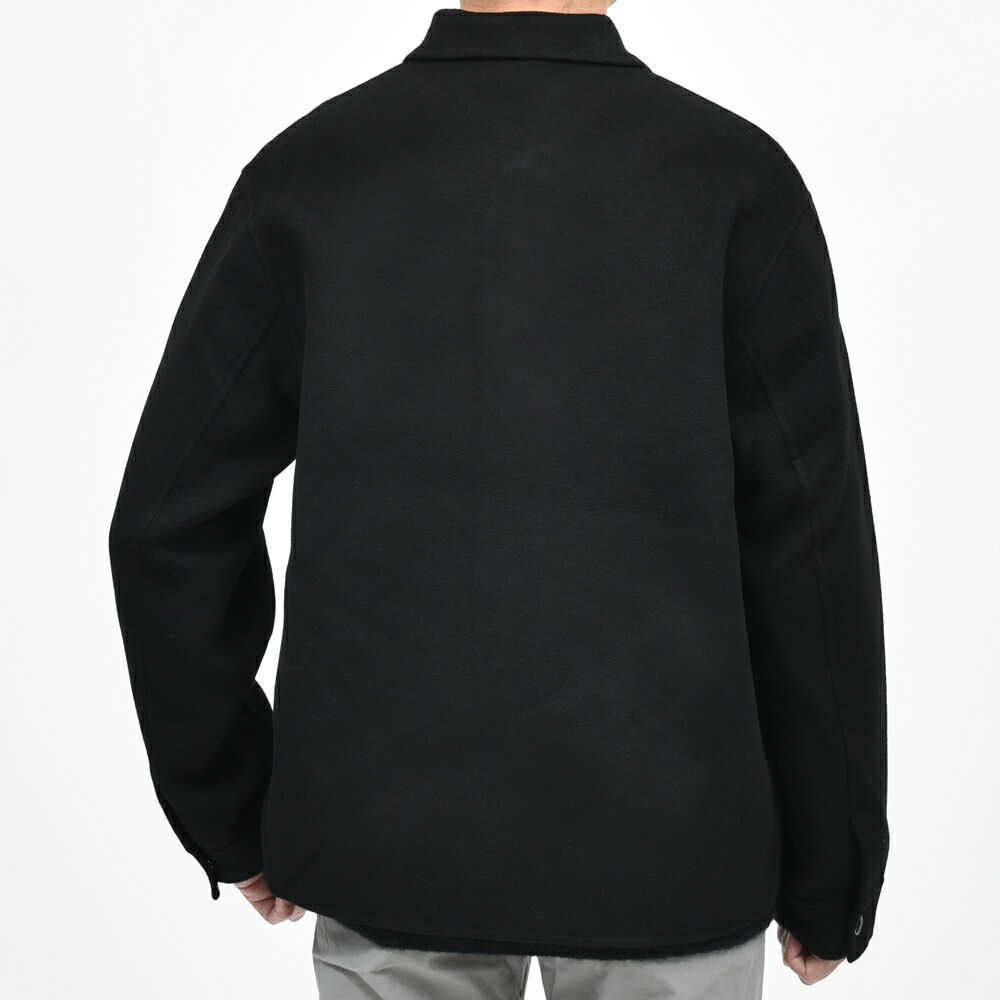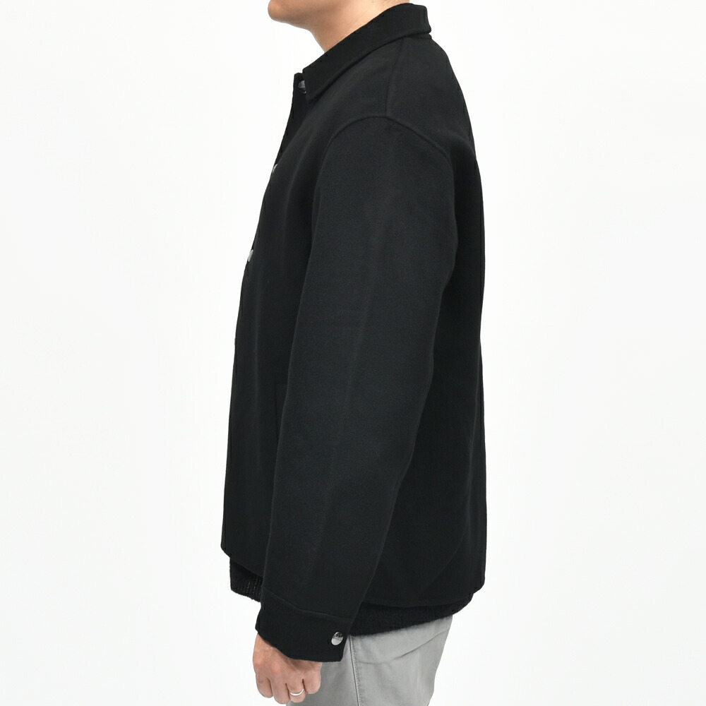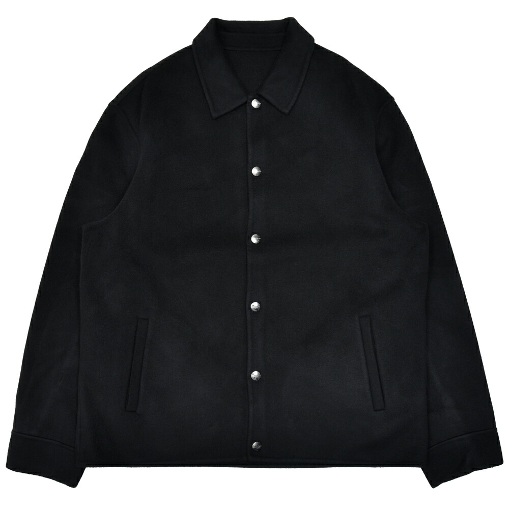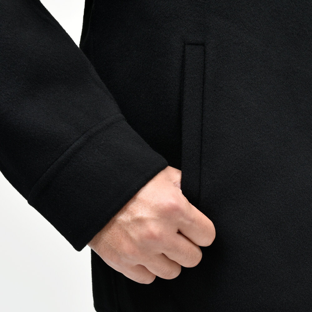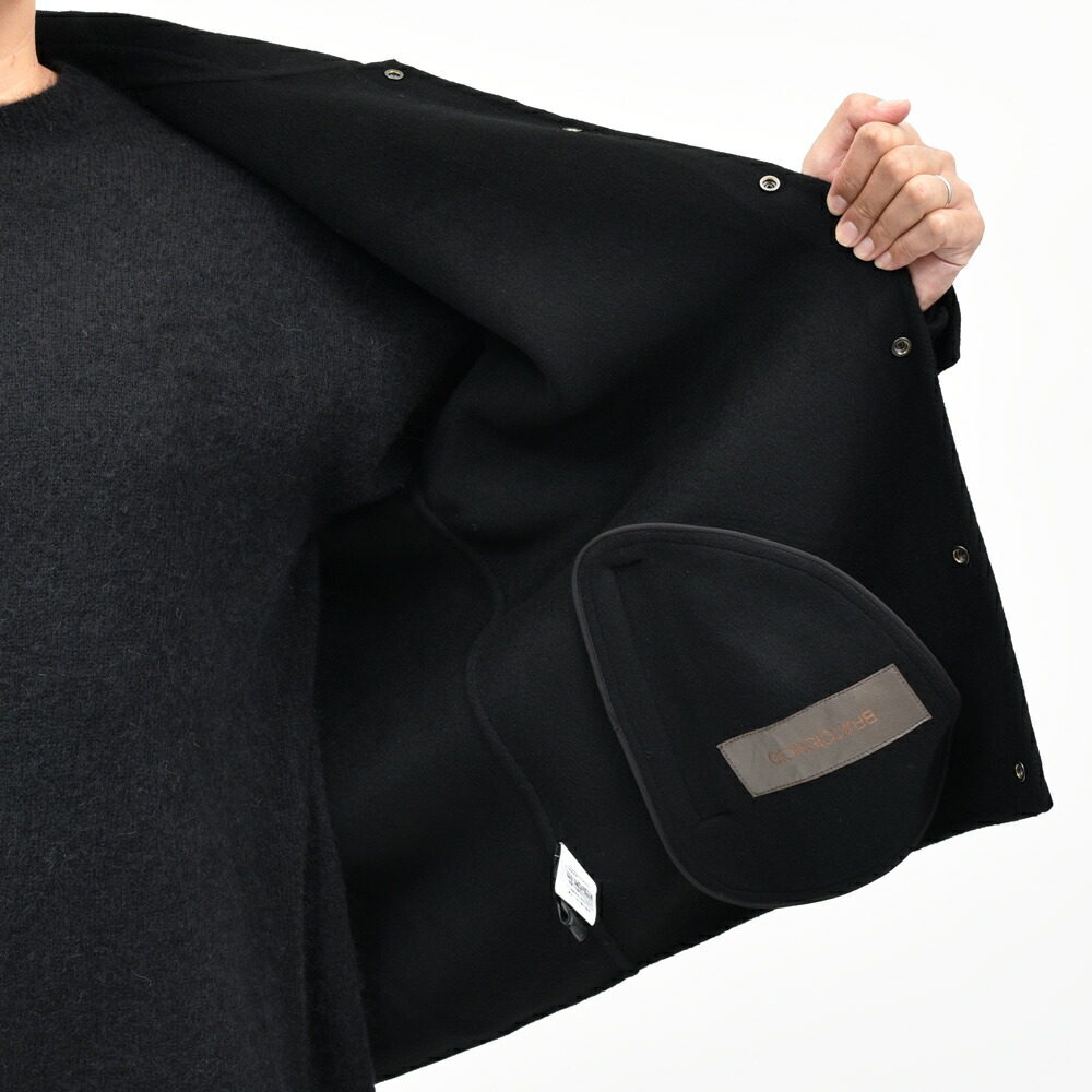 シンプルなコーチジャケットタイプ、スナップボタンでフロントを留めるカジュアルなデザインですが、襟付きなので一定の品格が備わっており、さらにウールカシミアのダブルフェイスで仕立てることでグッと優雅に仕上がっています。