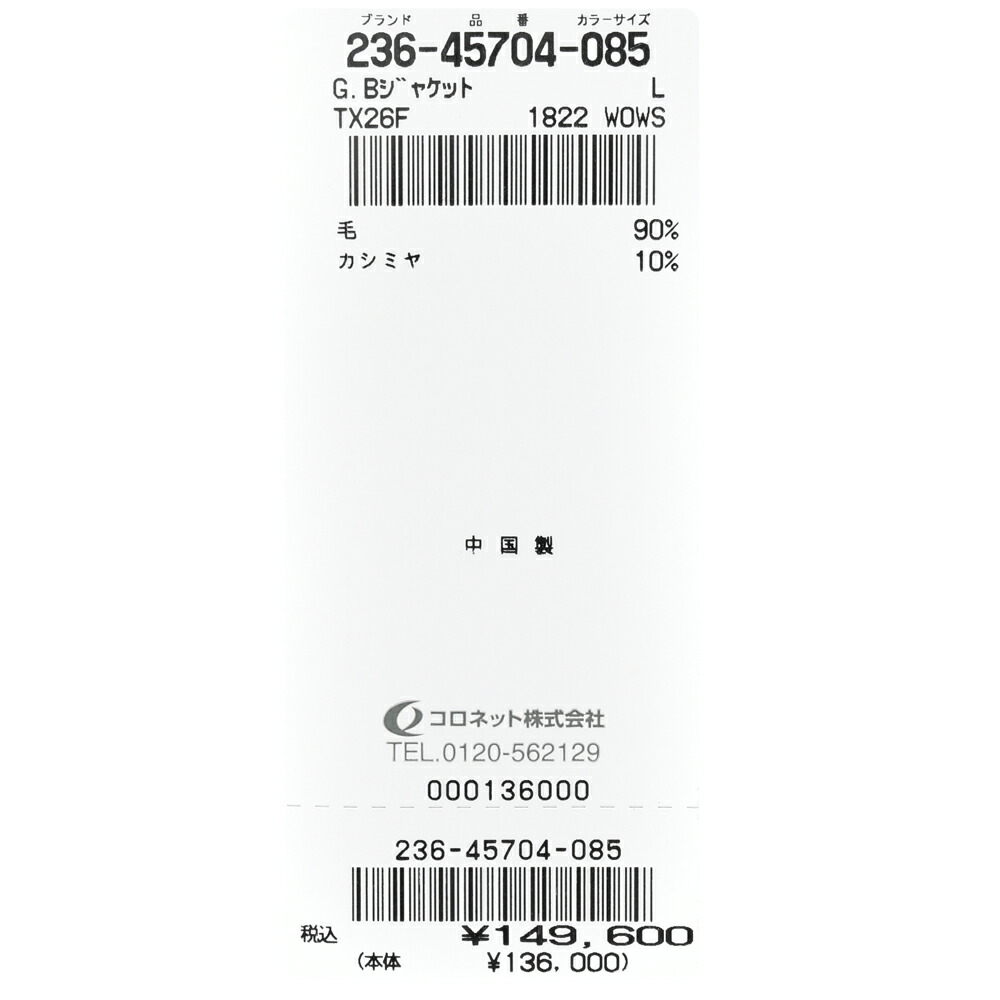 ダブルフェイスウールカシミアコーチジャケット 236-45704 14056004052