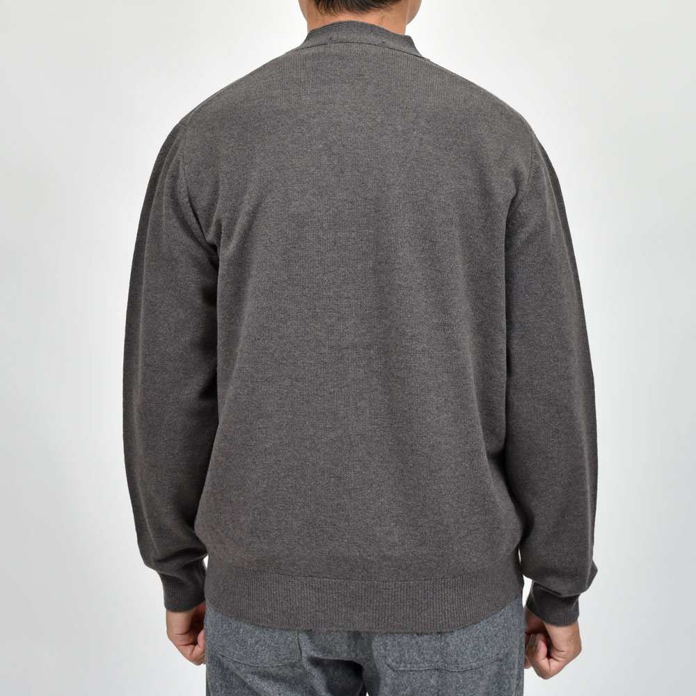 ただ作りに関してはこだわりが発揮されていまして、カーディガンにありながちなネック部分のリブが寄れてしまわないように前立て部分を7ゲージにしてフィット感を高めたり、シルエットも過度にスマートにしすぎず、身頃は12ゲージの糸を使うことでクリーンな雰囲気を強調。いつ着ても適度なリラックス感を演出できるようにバランスを整えています。