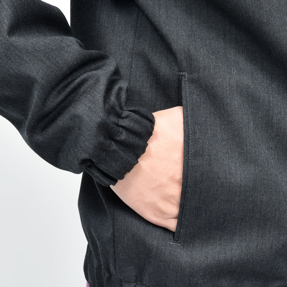 どこまで上品に仕立てることが出来るか?にこだわった一着で、普通のデザインとしては袖や裾にニットリブが用いられるところ、こちらはボディと同じ生地でゴムを忍ばせる仕様を採用。そうすることで全方位にウール見えし、スポーティさが抑えられ、上品に見えるように仕上がっています。