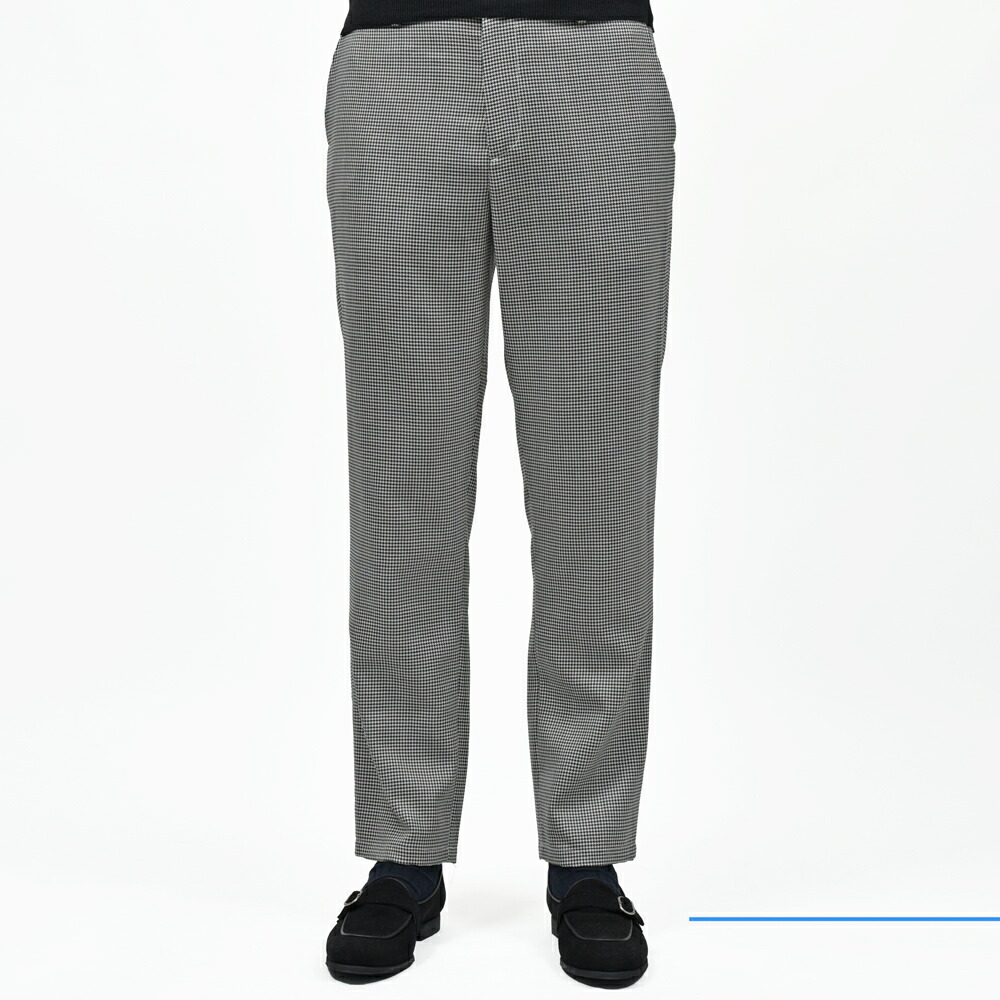 ドレス見えもさせられるテクニカルな柄物パンツは探してもなかなか見つからないので、この生地があり、別注で仕立てられたのは僥倖でした・・・というと大袈裟ですが、とにかく良いものができて良かったです。