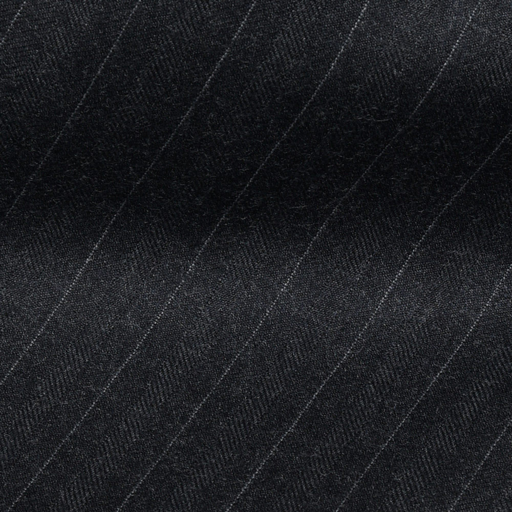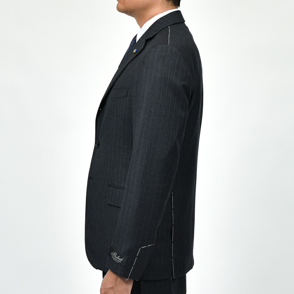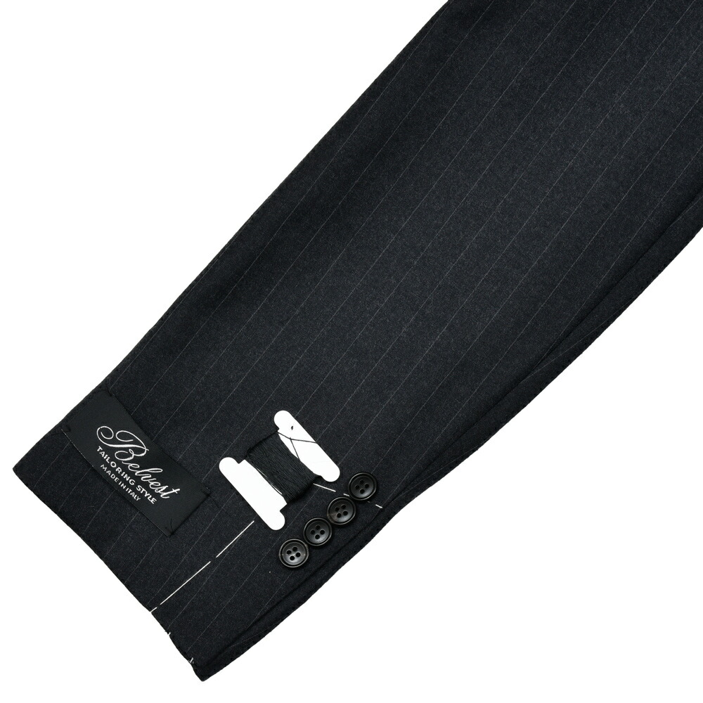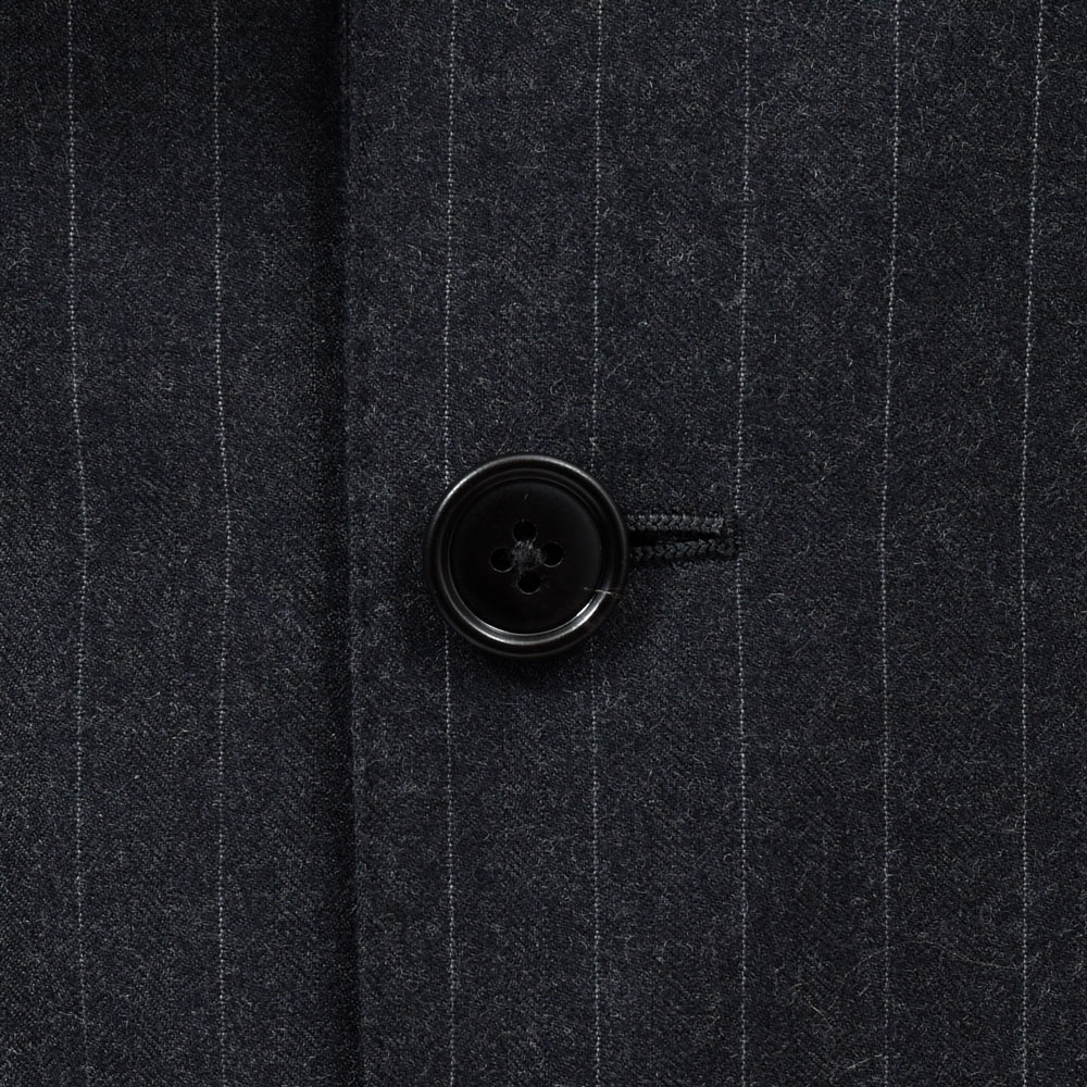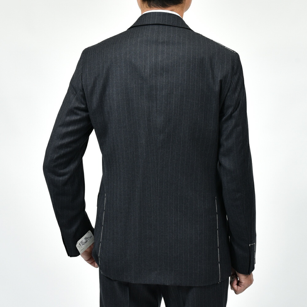 上質な100%ウールのピンストライプ生地は、滑らかでしなやかなタッチと程よいハリを兼ね備え、端正で知的な印象です。 北イタリアらしい構築的かつ立体的な仕立てと相まって、着心地の良さと上品なシルエットを実現しています。 落ち着いたグレーのストライプ柄はビジネスからフォーマルまで幅広く対応し、長く愛用できる一着です。 3ボタン / フルライニング / フルキャンバス / サイドベンツ / アンフィニッシュドスリーブ / 1プリーツ / テーパード (フラワーホールに付属するベネチアングラスはスペアボタンと同梱しています。外れやすいのでご注意ください。) (画像のスタッフは182cm、76kgで50サイズを着用しています。) |