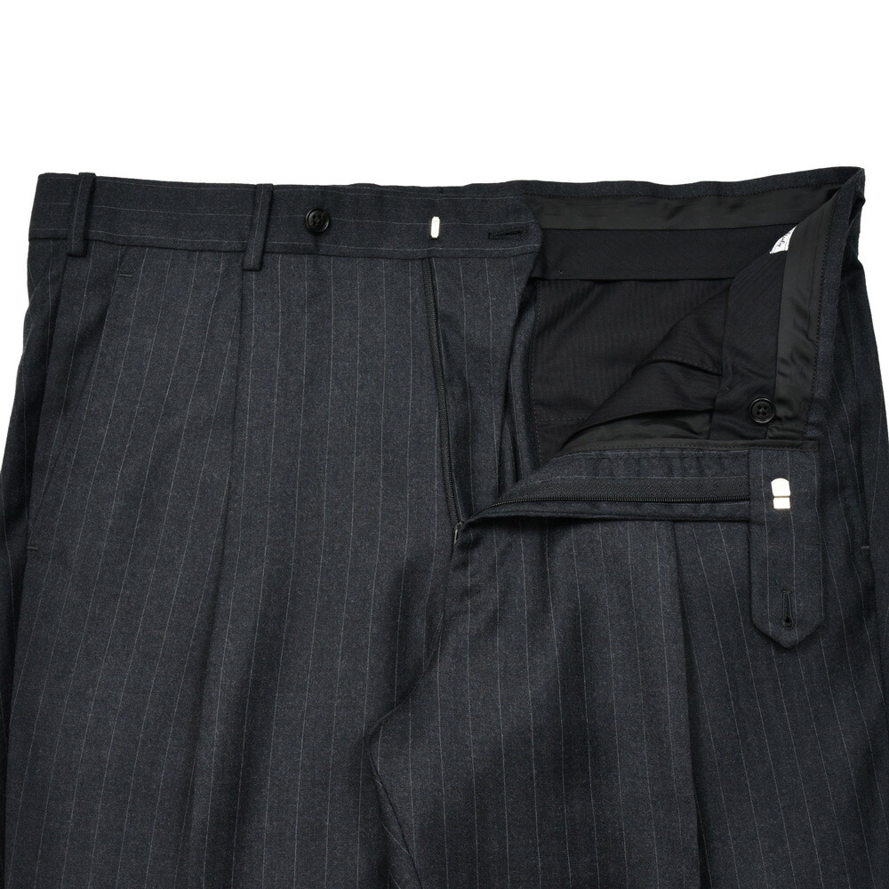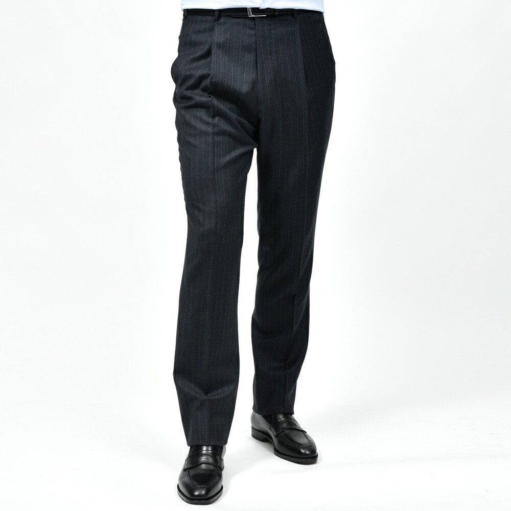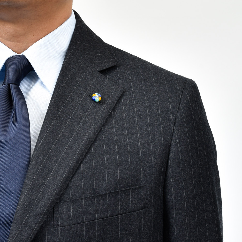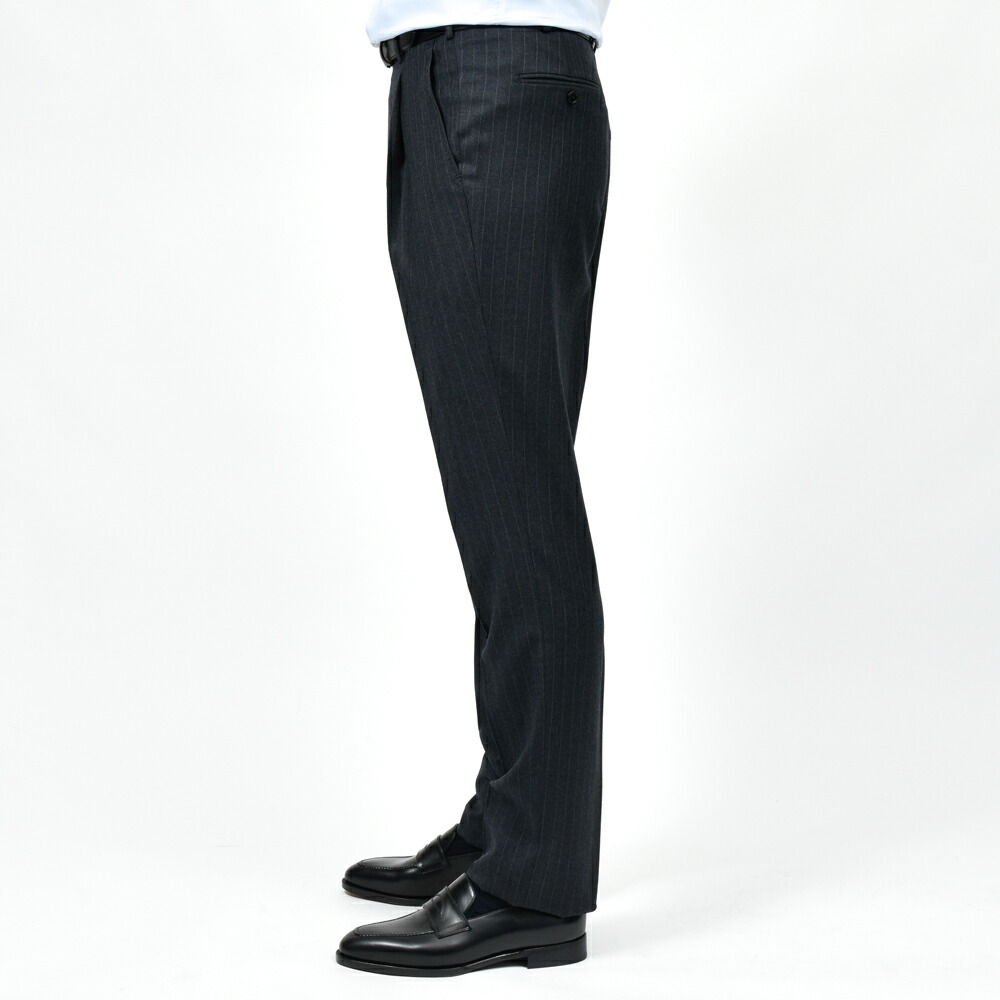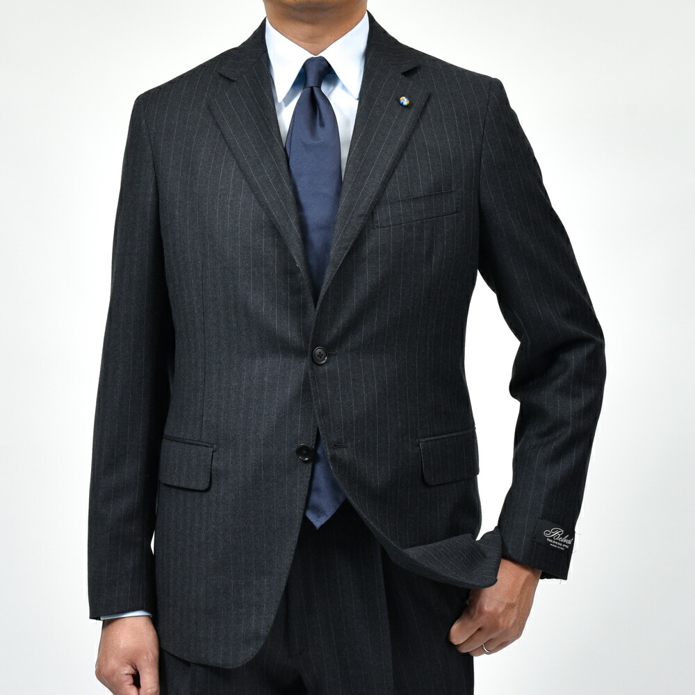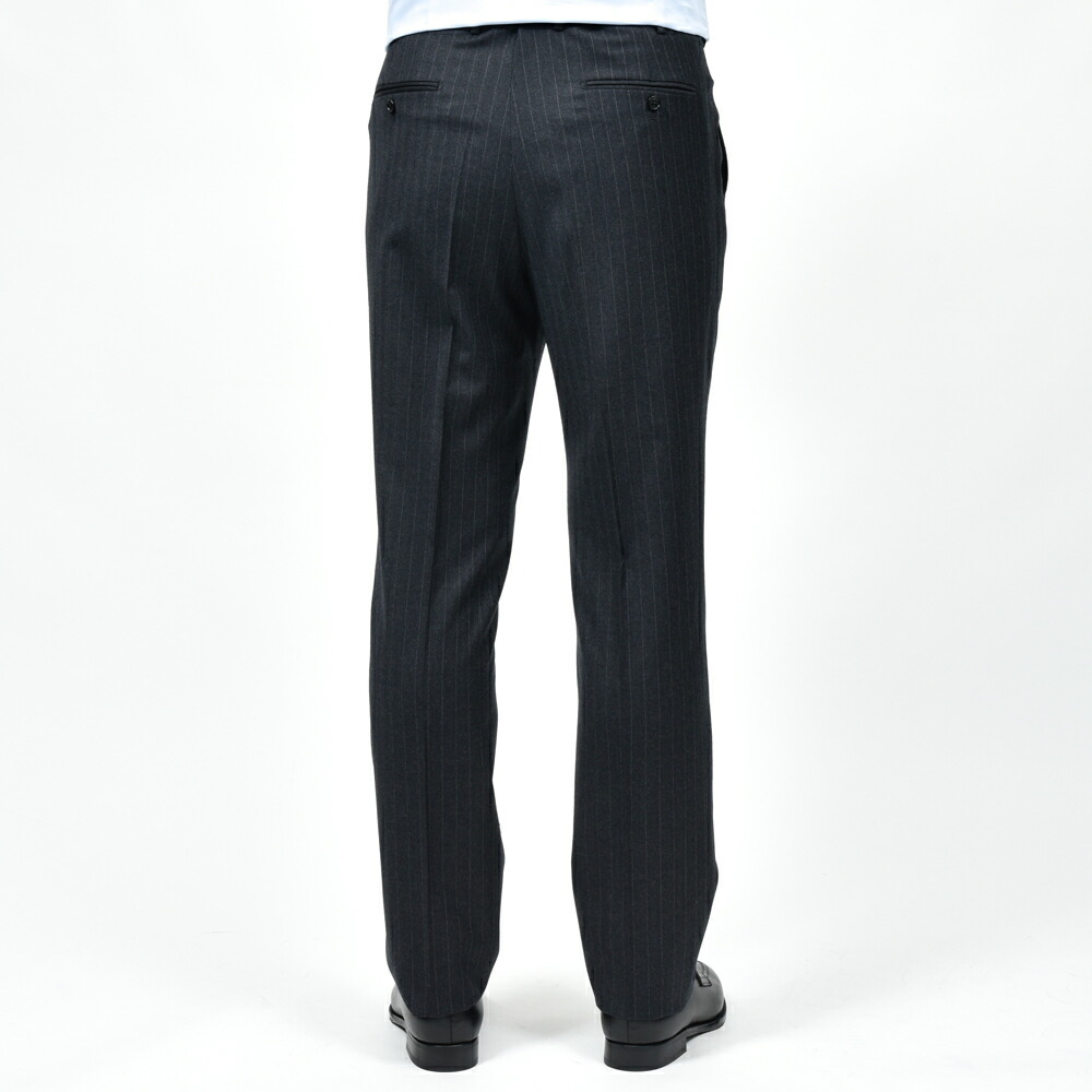 上質な100%ウールのピンストライプ生地は、滑らかでしなやかなタッチと程よいハリを兼ね備え、端正で知的な印象です。 北イタリアらしい構築的かつ立体的な仕立てと相まって、着心地の良さと上品なシルエットを実現しています。 落ち着いたグレーのストライプ柄はビジネスからフォーマルまで幅広く対応し、長く愛用できる一着です。 3ボタン / フルライニング / フルキャンバス / サイドベンツ / アンフィニッシュドスリーブ / 1プリーツ / テーパード (フラワーホールに付属するベネチアングラスはスペアボタンと同梱しています。外れやすいのでご注意ください。) (画像のスタッフは182cm、76kgで50サイズを着用しています。) |