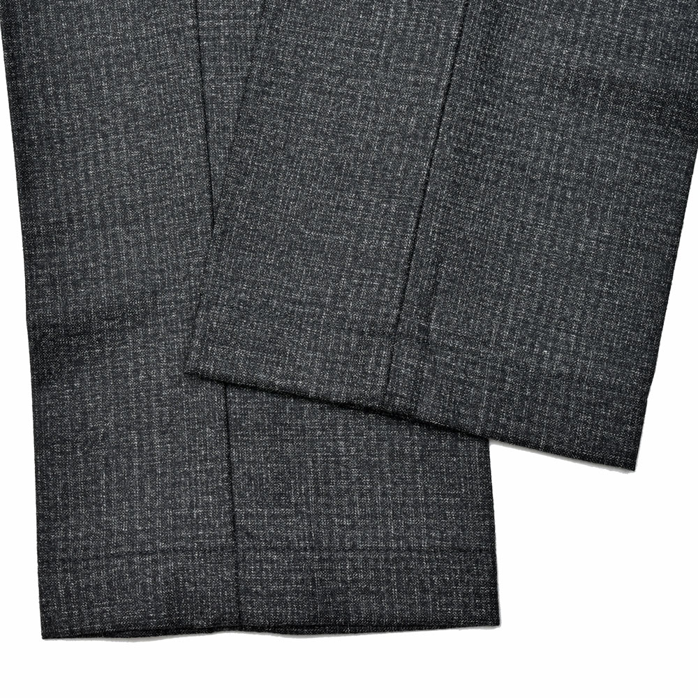 遠目からだとメランジにも見えなくはないチェック、カラーはチャコールグレーなので幅広いスタイルでお使い頂けるのではないかなと思います。