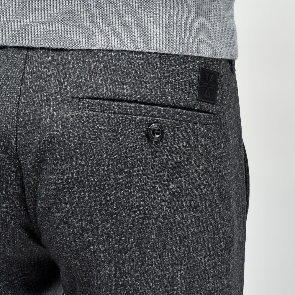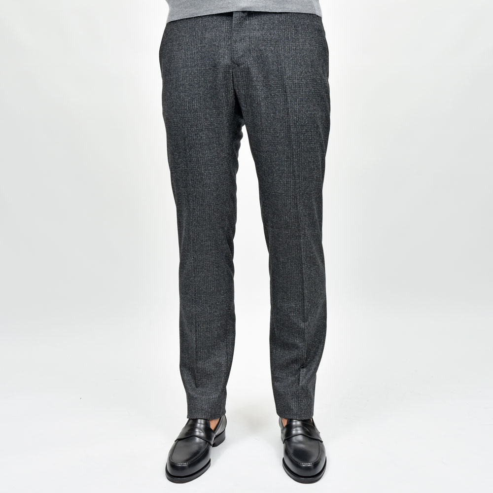 チェック柄を採用しつつもコントラストは低め且つ柄の目が細かいので、そこまでパンツ自体が前にでる感じではありません。故に柄ものであっても取り入れやすいのがポイントですね。