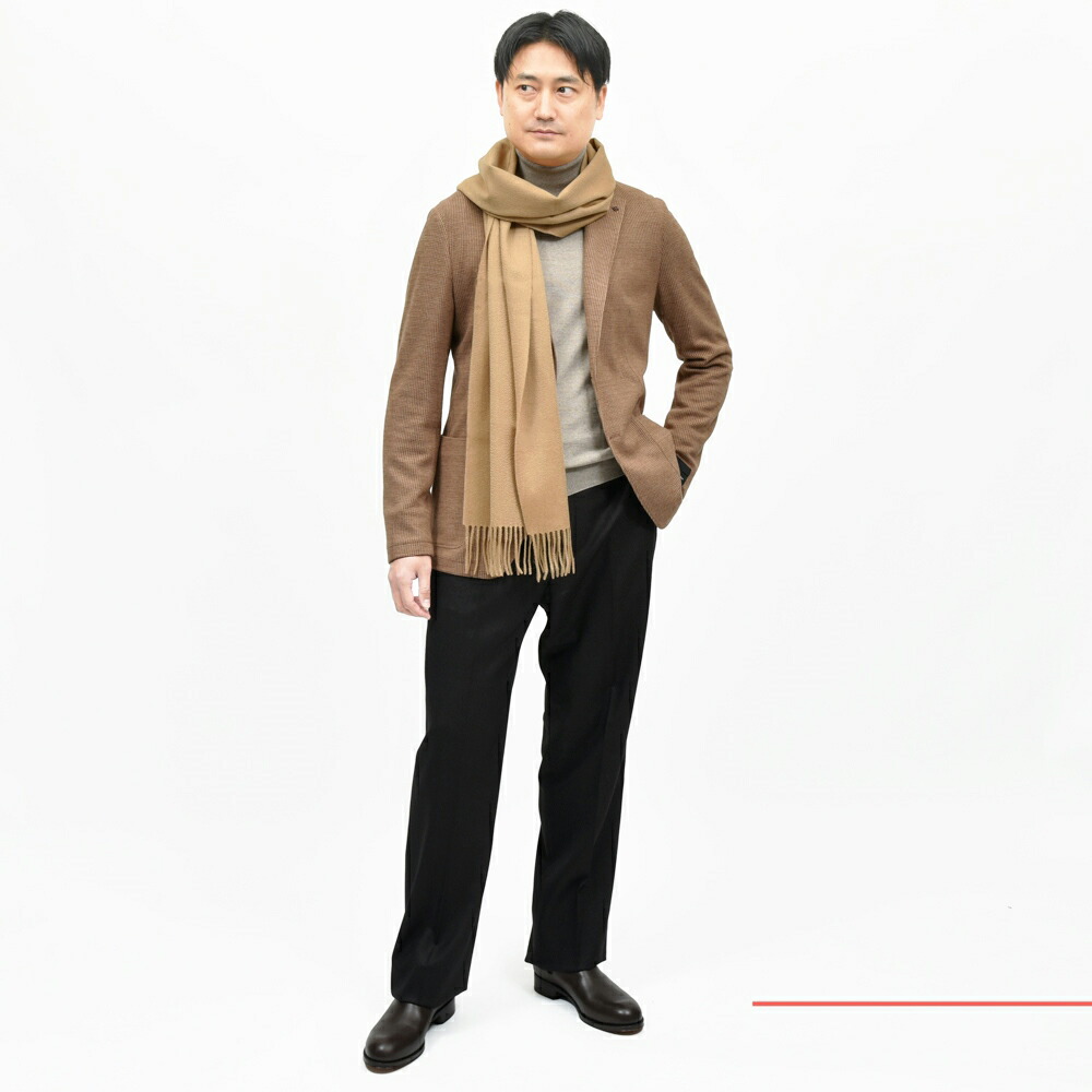 もちろんカントリー見えせずに、都会的な雰囲気を漂わせます。暖色の浅いトーン、ブラウンを用いるとどうしてもカジュアル感が強く出るんですが、仕立て&配色の妙で落ち着いた色気を伴った仕上がりになっており、さすがTAGLIATOREだなと。