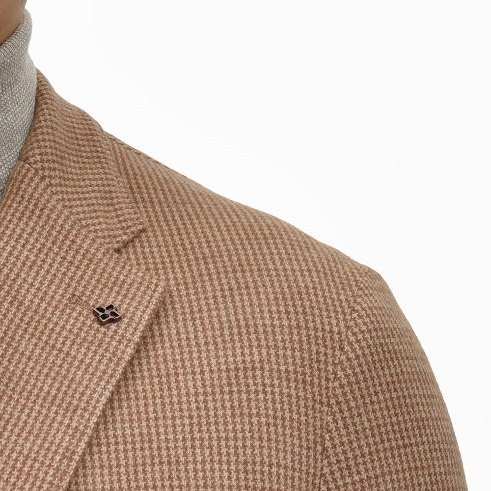 かなりナチュラルな見え方で、タッチのしなやかさと滑らかさから「カシミアかな?」と勘違いしてしまうほどのクオリティを誇るテックジャージ、ハウンドトゥースパターンを採用しイタリアらしい色気とエレガンスを漂わせます。