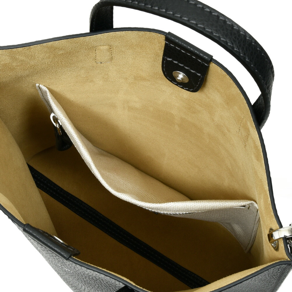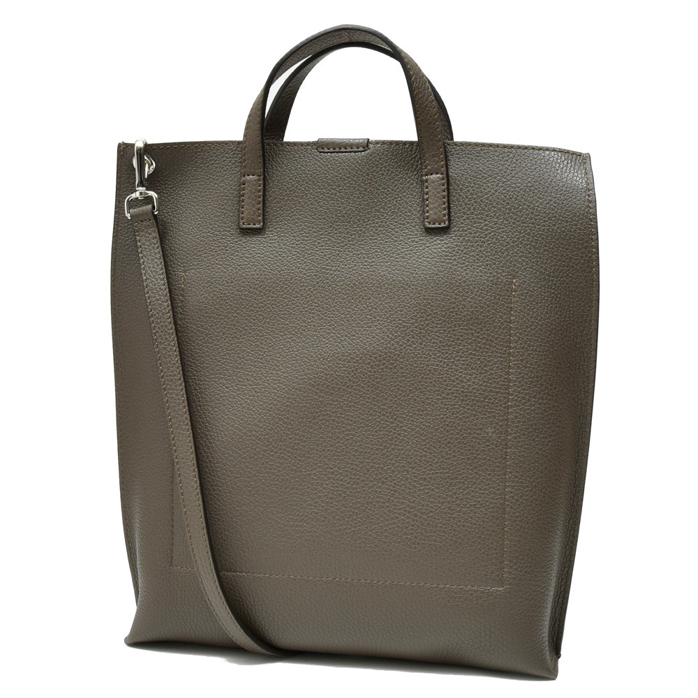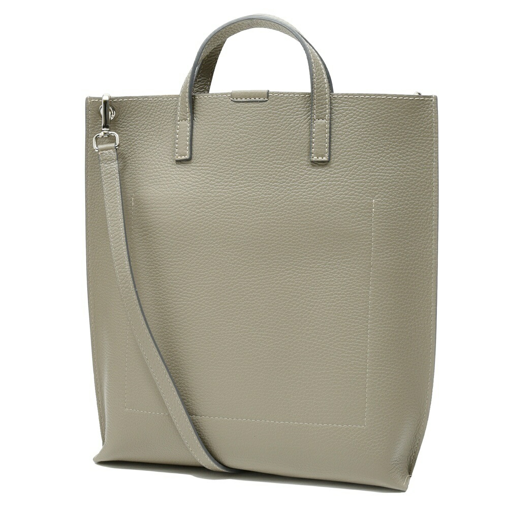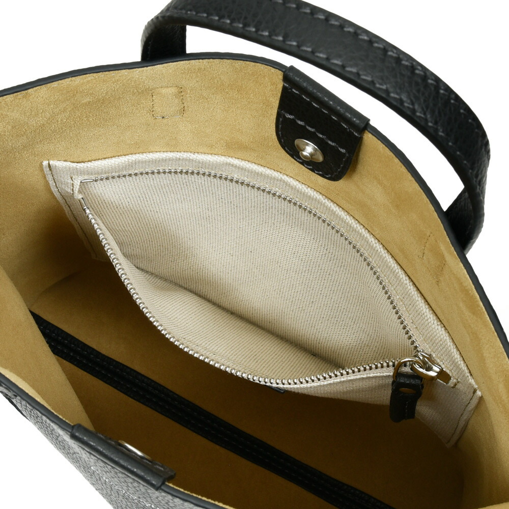 トートとしてはややコンパクト、A4クリアファイルがギリギリ収まるくらいのサイズ感で、ハンドルは細く短め。取り外し可能なショルダーストラップも同じく細目に仕立てられていて、かなりミニマルなルックスです。