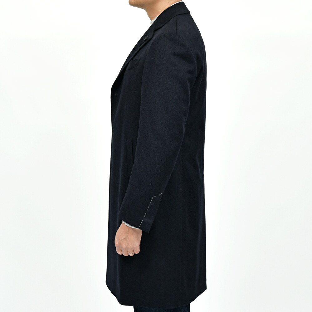 イタリアらしいスラリとした立ち姿を求めるなら、絶対にこれは候補に入れる必要があるLARDINIのチェスターコート。中でもLoro Pianaファブリックを用いたモデルは同社の中でもトップクオリティです。