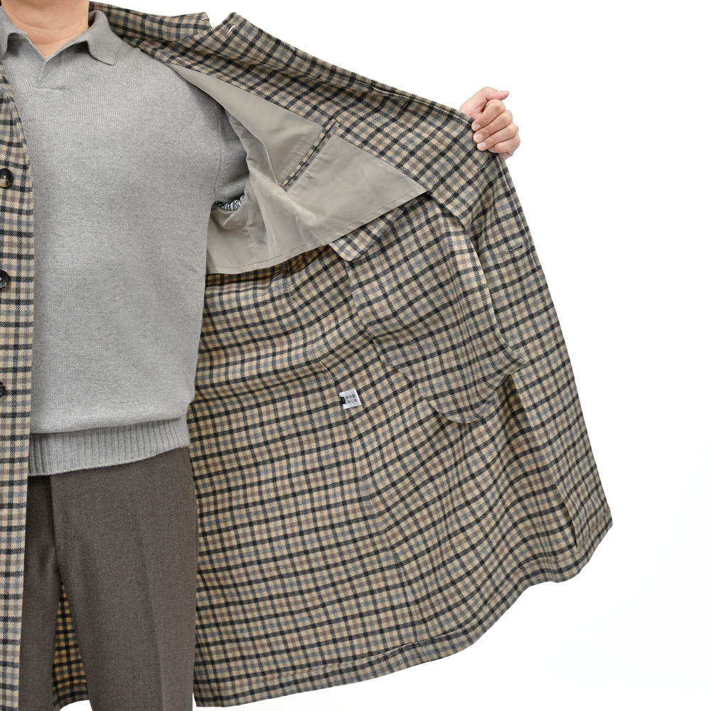 派手な色ではなく、伝統的であり、アーシーな配色を用いることで押し出しが強くなく、英国のルーツを感じさせるような紳士的な仕上がりになっているコートです。