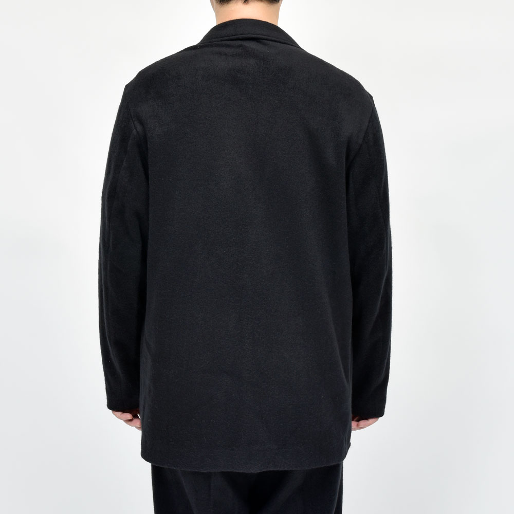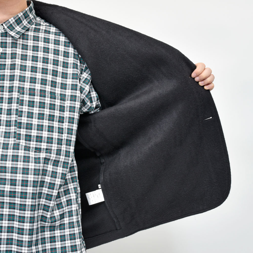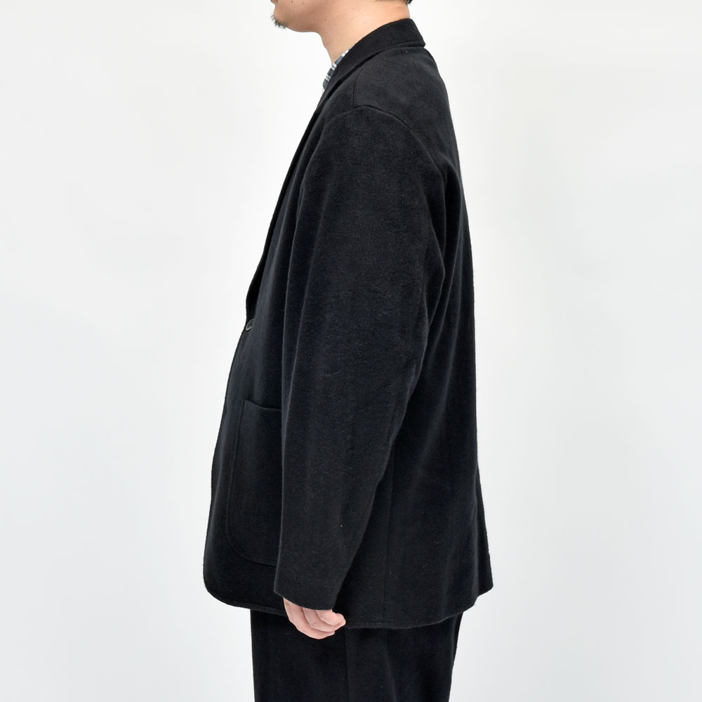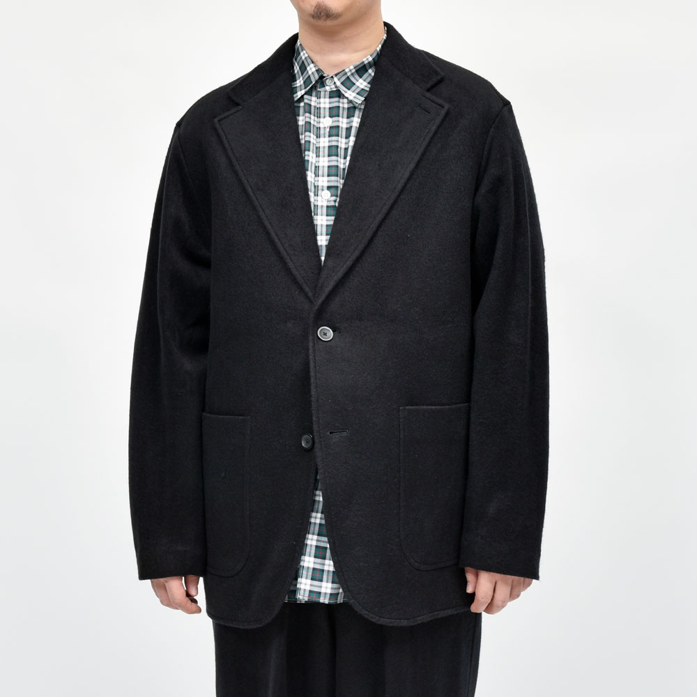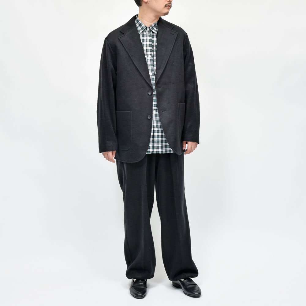 シルエットは絞りのないボクシーなタイプにする事でリラックス感を加速させています。ラペルも幅広のものを採用する事で今っぽさを表現。ジャケットという形を成したリラックスウェアと言っても良いかもしれません。