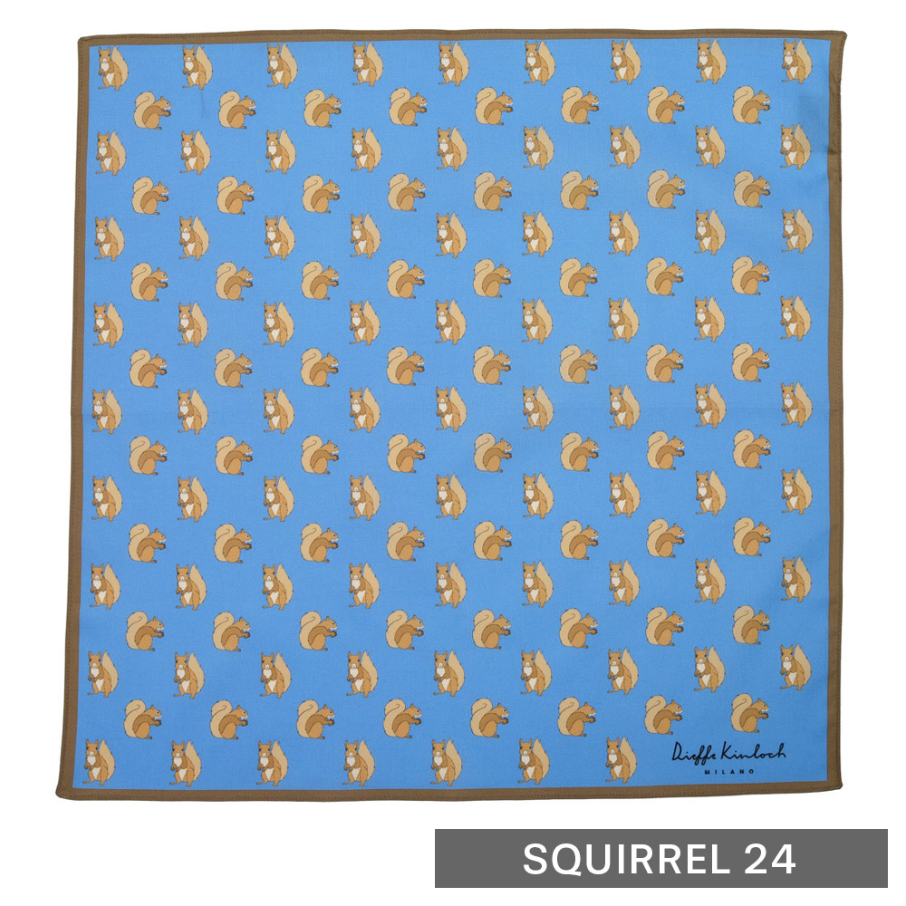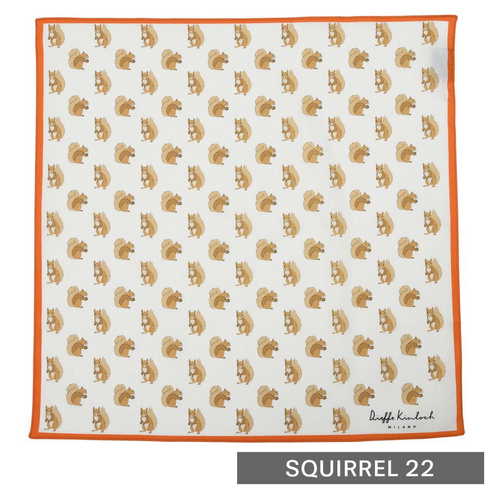 こちらのDieffe Kinlochのイタリア製ハンカチーフは、リスとネクタイをモチーフにした2種類展開で、ユニークかつ洗練されたグラフィックが魅力。
