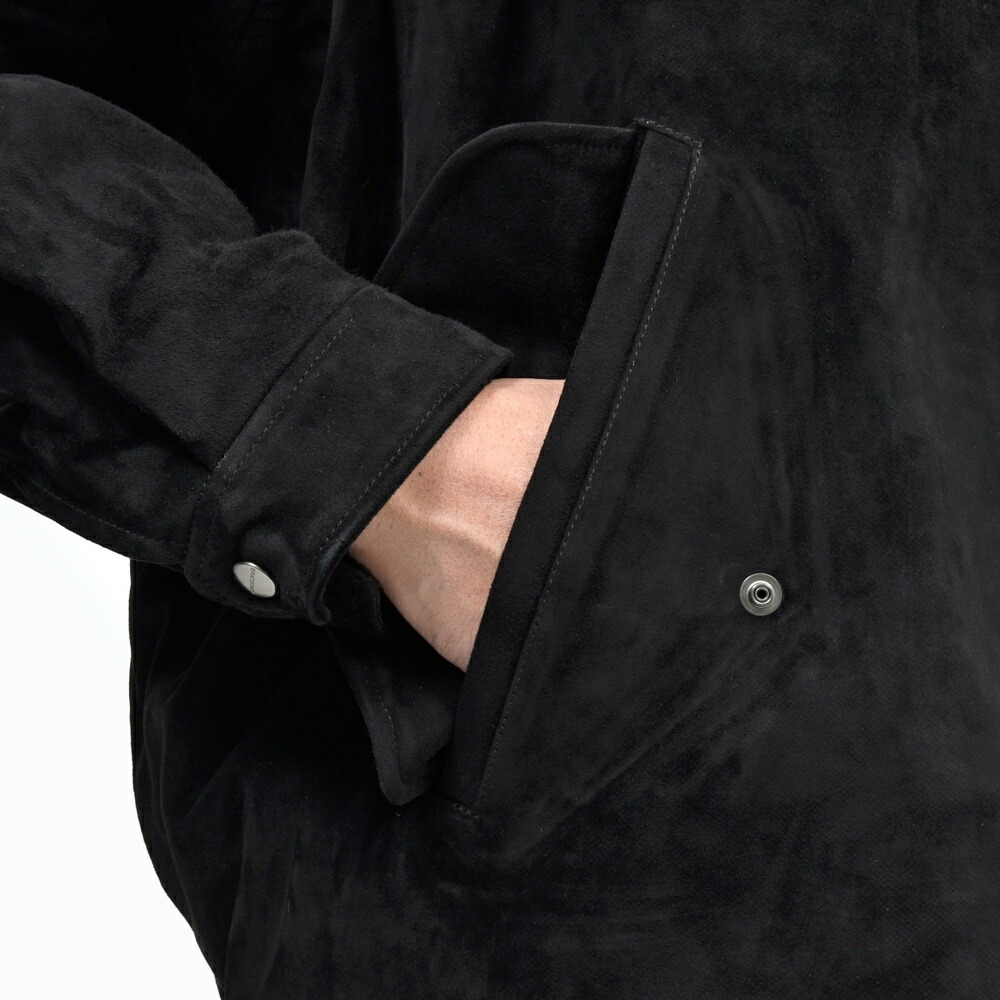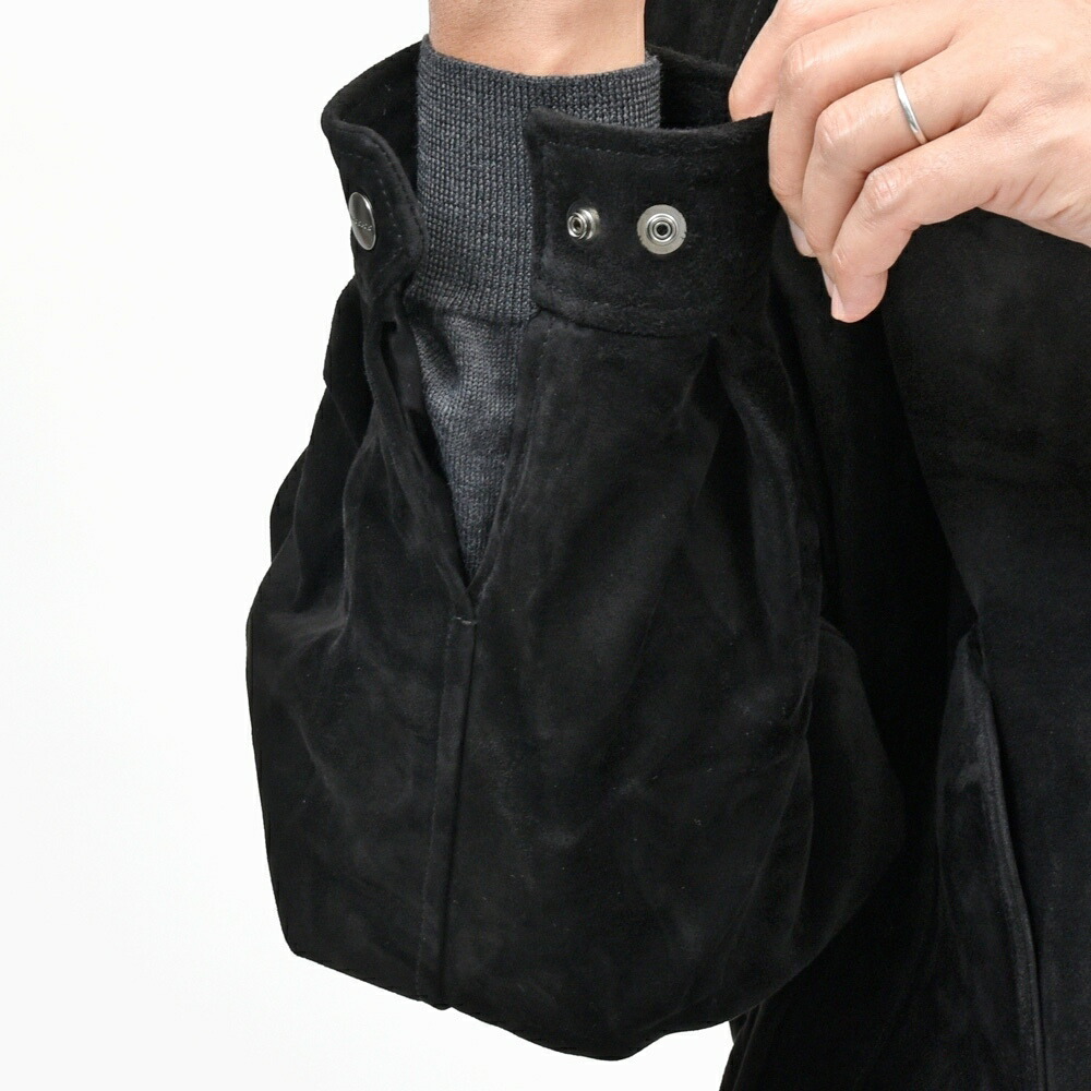 中綿入りなので少しシルエットに張りがでまして、スエードなんですけどクタっと見えずにリラックスフィットのラインが綺麗に描かれています。