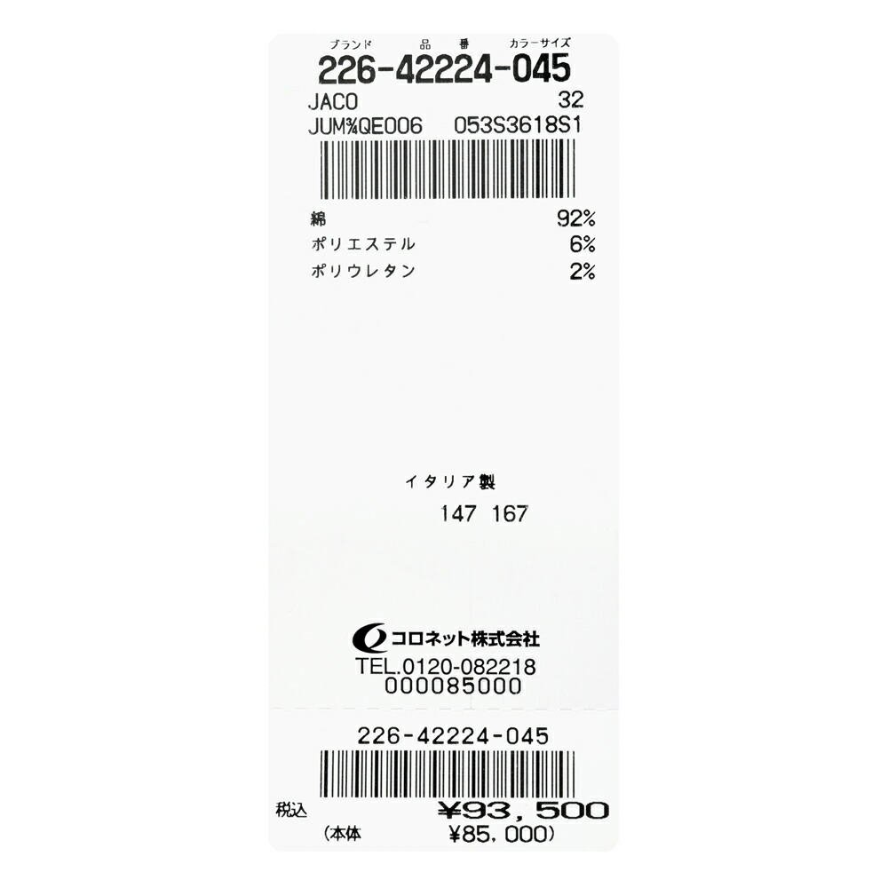 パッチやステッチをダークグレーで統一することで全体のトーンがすっきりとまとまり、ミニマルで上品な佇まいを実現。NICK特有のバランスの良いスリムシルエットが脚のラインを美しく整えてくれます。加えてストレッチが大変よく効いているため、細身でありながらストレスを感じさせないスムーズな穿き心地も魅力。見た目のシャープさと着用時の快適さを自然に両立したデイリーに活躍する一本と言えます。