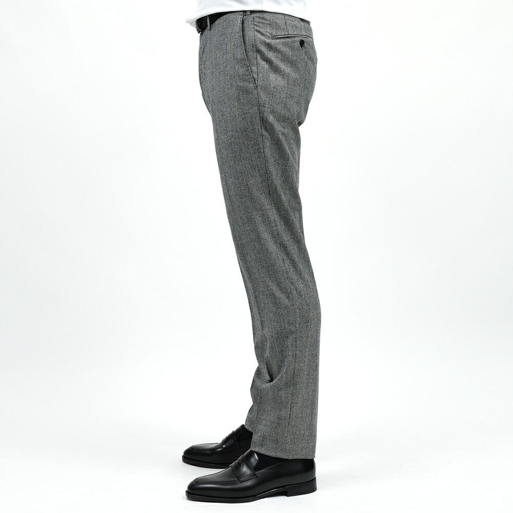 適度な張りとしなやかさを併せ持つため、テーパードシルエットがより立体的に映え、ビジネスにも品良く馴染む生地感です。