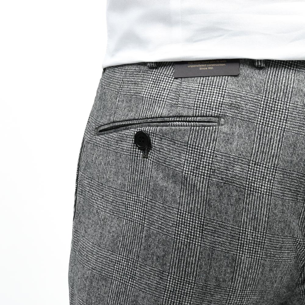 モデル35のすっきりした腰回りとテーパードラインが柄の細やかさを引き立て、品よくまとまるのも魅力ですね。