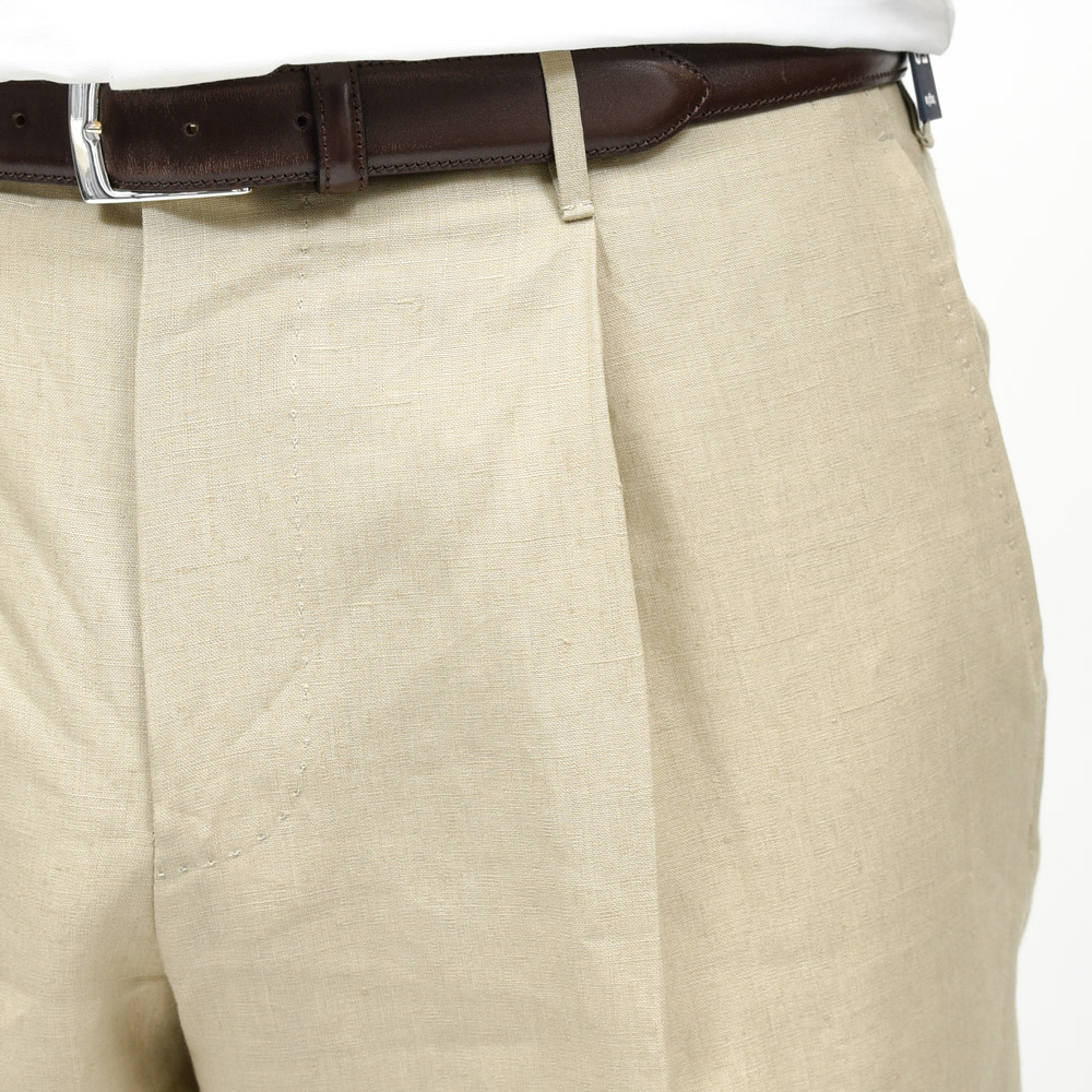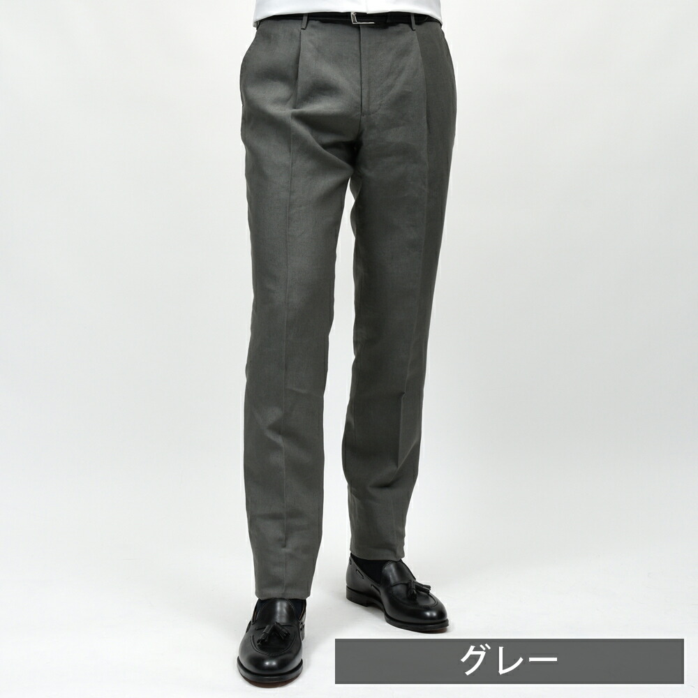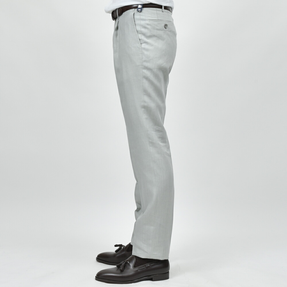 1プリーツのテーパードラインに丁寧なプレスが重なることで、軽快さと端正さが共存する、春夏にこそ選びたい一本に仕上がっています。