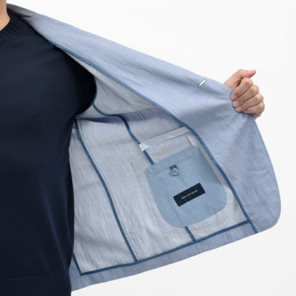 世界的に春夏シーズンの温暖化が進んでおり、日本だけでなく他でも「軽さとカッチリ感が両立された色気のあるジャケット」が求められている背景があることから、見返しの生地を大胆に削減し、副資材も軽い物しか使わずに仕立て上げたモデルがLIGHTというわけです。