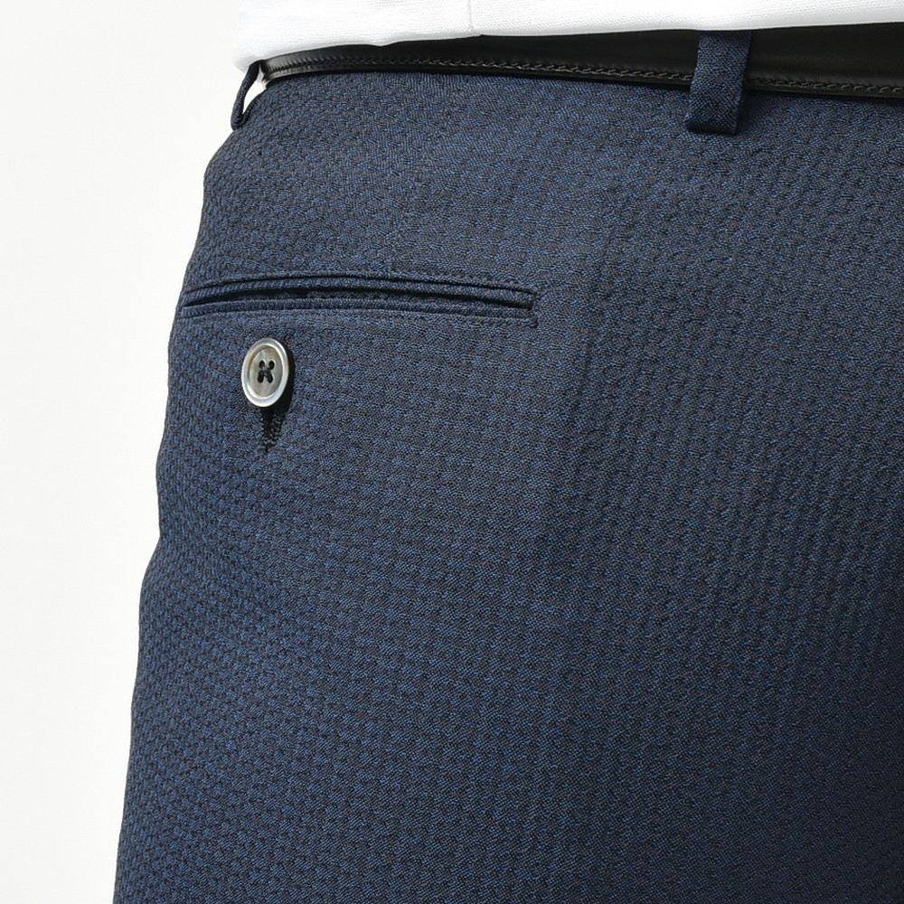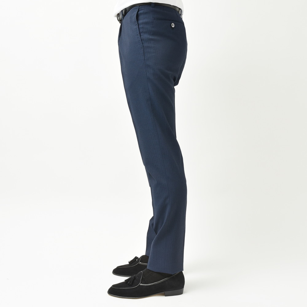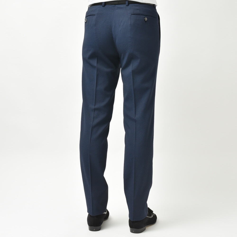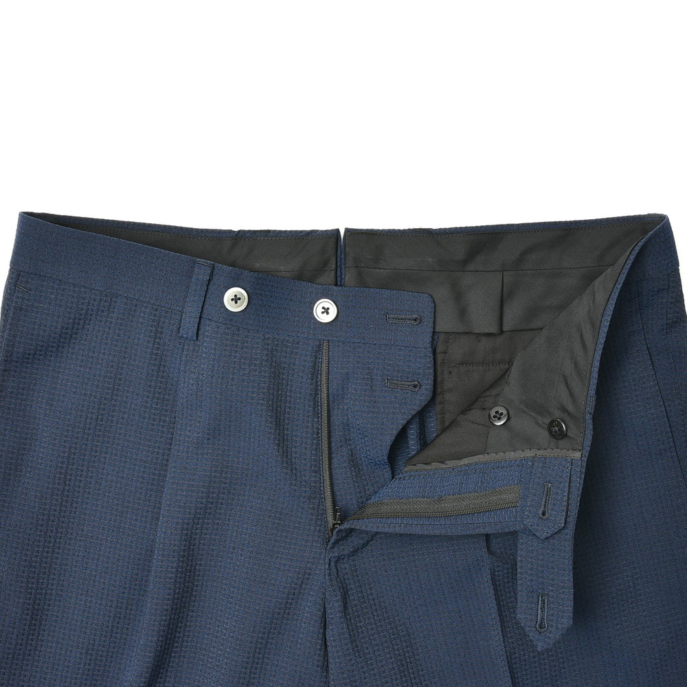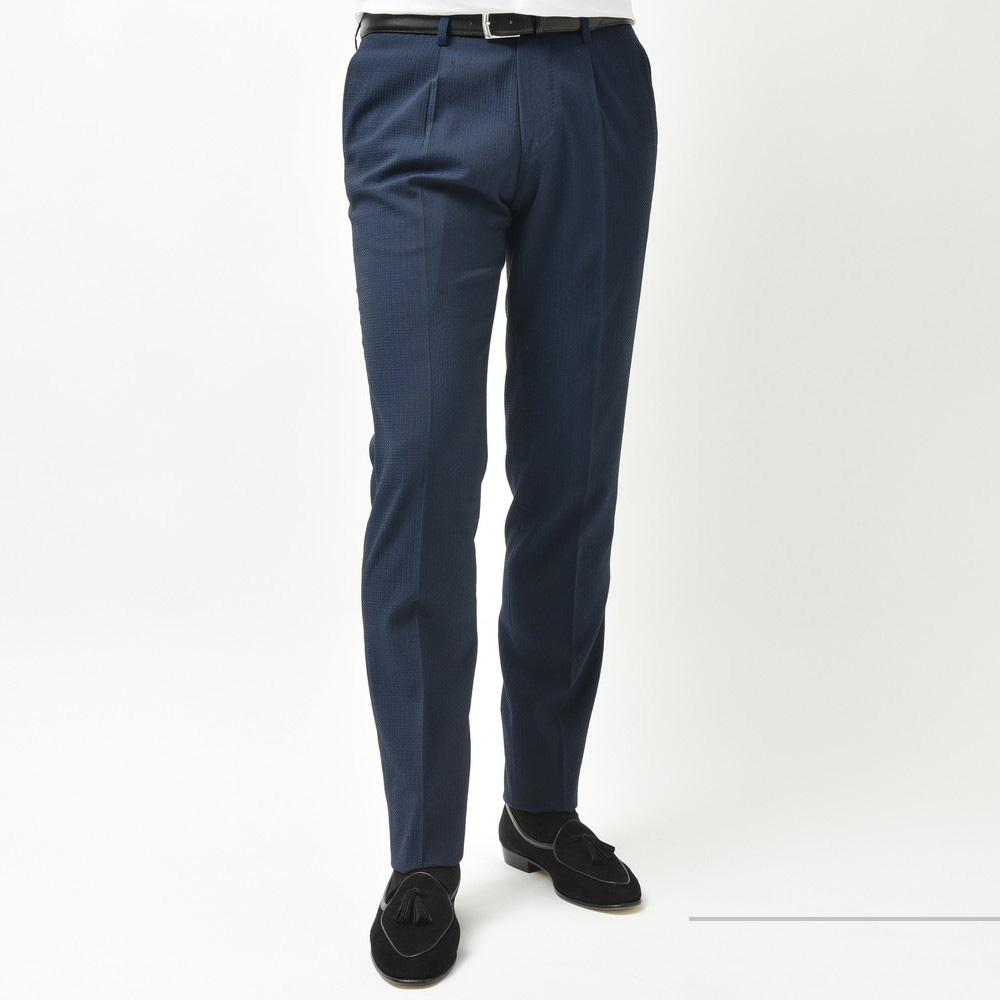 こちらはVITALE BARBERIS CANONICOヴィターレバルベリスカノニコのウールシアサッカー生地を用いた一本で、ウール素材特有の型崩れしにくさと、シアサッカー組成ならではのナチュラルにしなるストレッチ性、そして通気性の高さが魅力の一本。