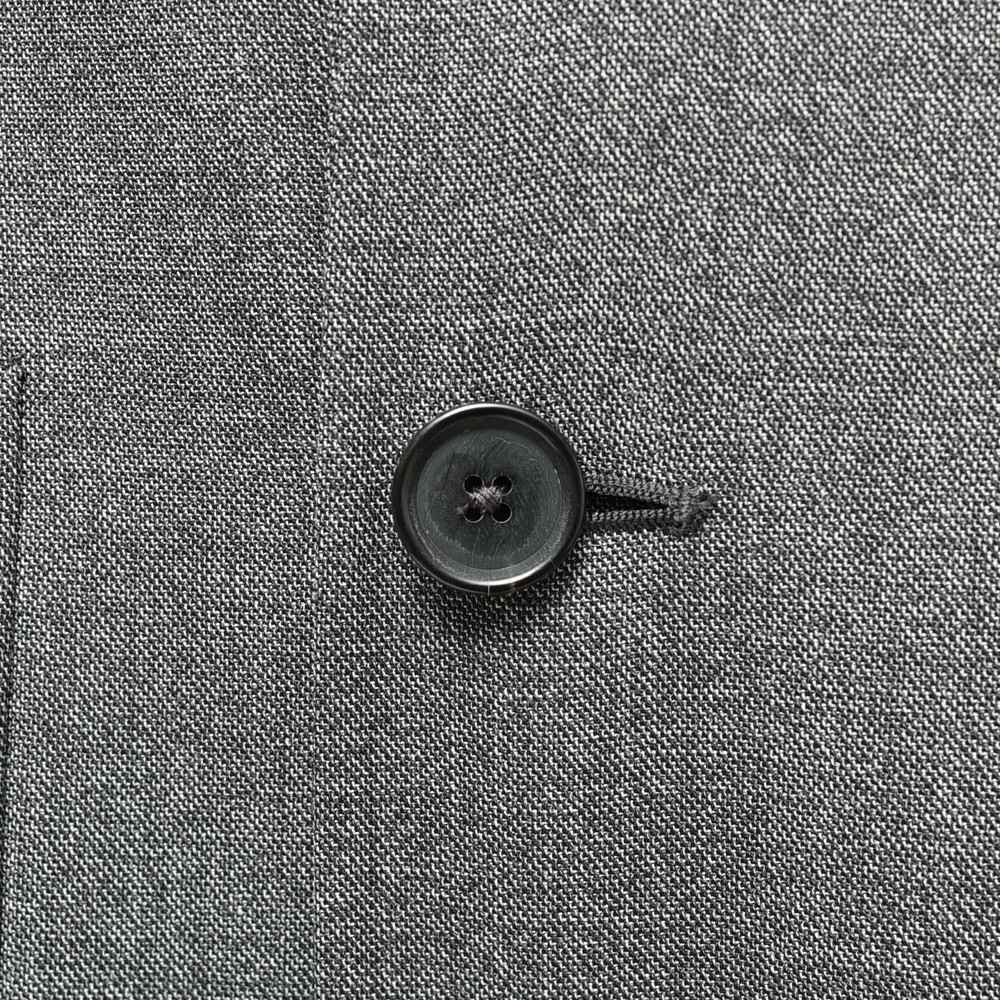 “グレーのダブル”と聞くと英国的でストイックなタイプかビジネス色が強いタイプ、もしくはちょっと懐かしのバブリーなスタイルのイメージがありますが、こちらはそのどれでもなく、極めて都会的でモダンな印象。生地の持つカチッとした印象と、仕立ての持つ程良い抜け感が見事に融合しているように思います。