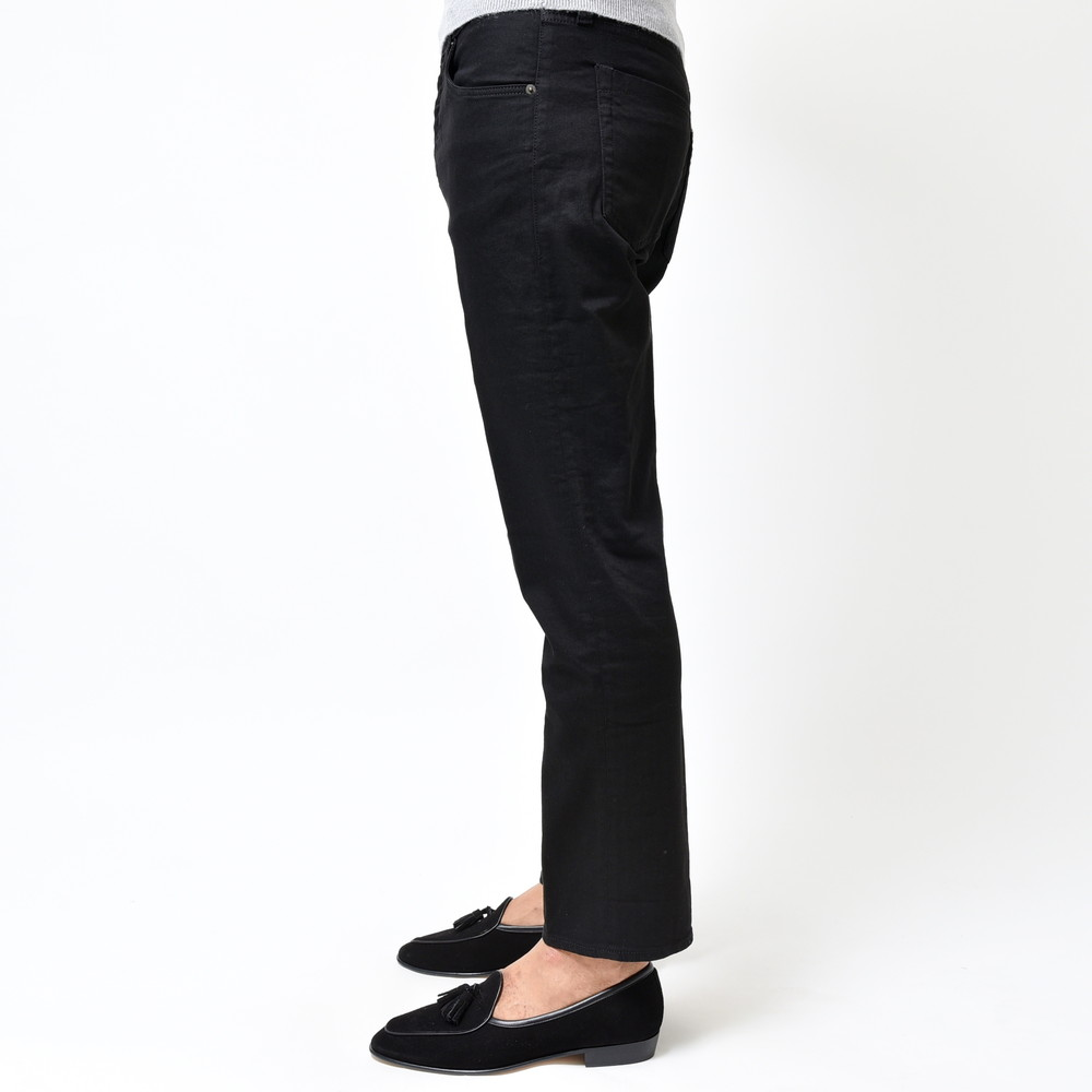 このシルエットに火が付き人気ブランドとなった事実からその完成度の高さが覗えますが、こちらは中でもプレーンなタイプでして、デニムではない漆黒のブラックパンツ。モードさがありながらもほのかに温かみを感じさせる、スマートなカジュアルパンツです。
