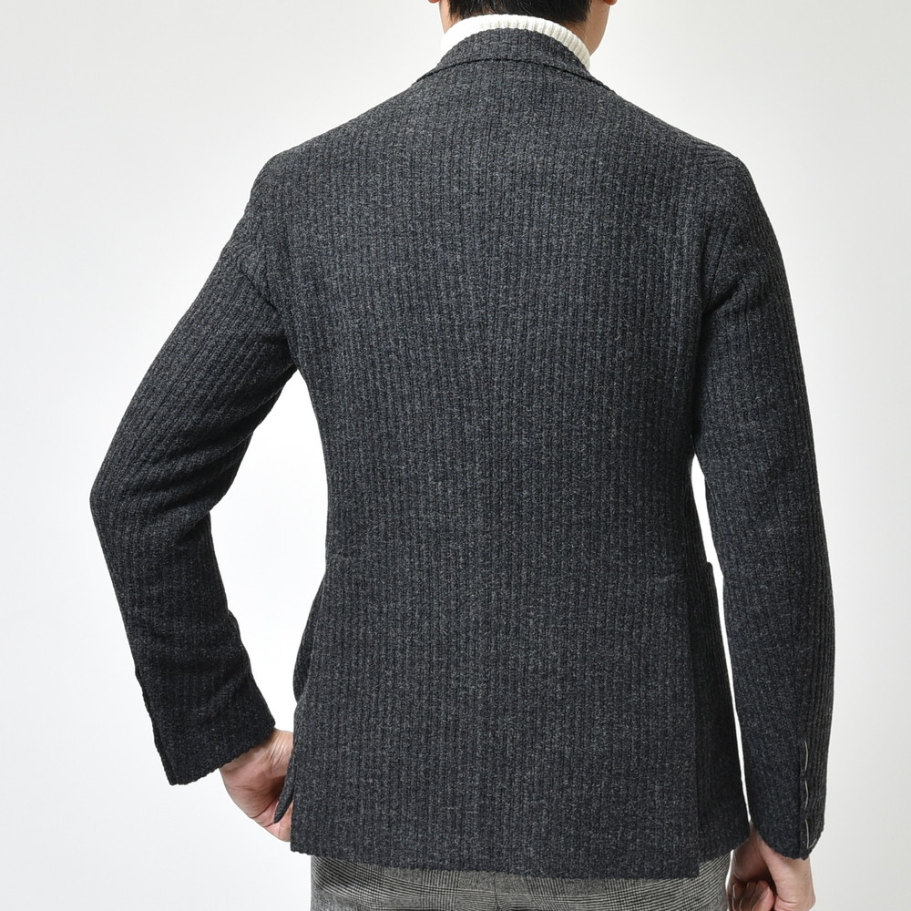 コットンではなくウールをベースに織り上げられているところも一般的なコーデュロイと違うポイントで、柔らかで高級感のあるブークレタッチは本当に見事です。羽織った時の感覚も非常に軽く、しなやか素材ならではの動きやすさもあり、非常に出来の良い一着に仕上がっていると思います。