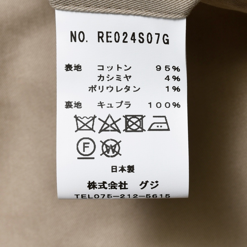 guji(グジ)オリジナルのドレスパンツはRING JACKETファクトリーに生産を依頼しており、定番展開しているスーツ組下と全く同じ仕立てとシルエットを採用しています。