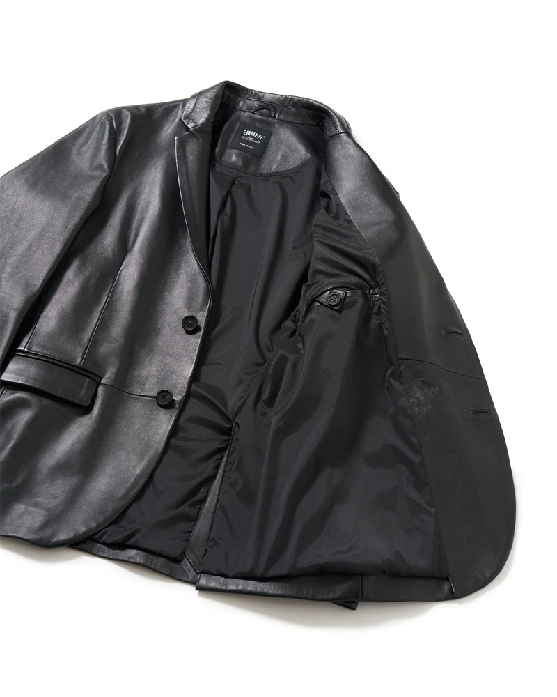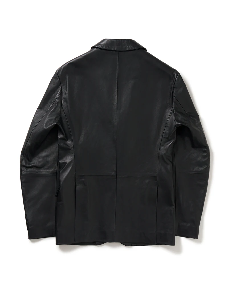 ラペル(襟)幅をあえて細身のナローラペルに設定し、全体をスリムなフィッティングバランスで構築することで、従来のレザージャケットに見られる無骨さを抑え、都会的なシルエットを形成しています。