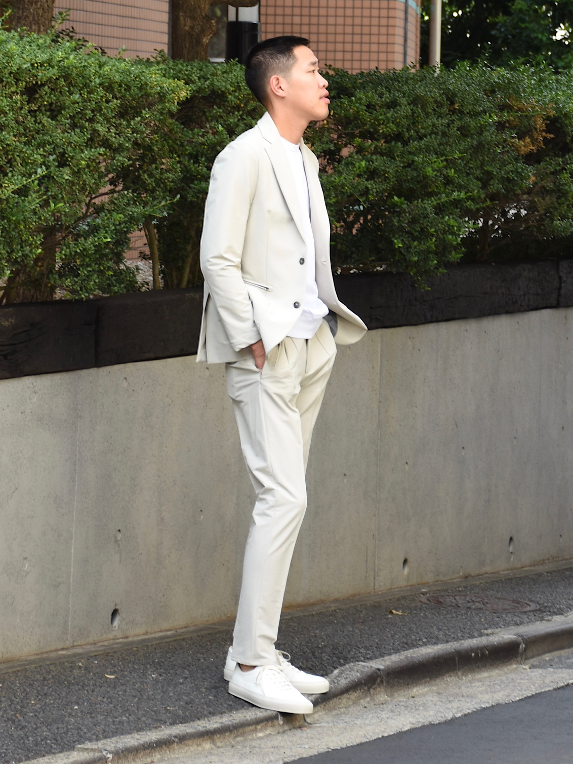 大注目の「トガージュ」コレクションを使ったベージュのセットアップを主役にしたコーデ。
