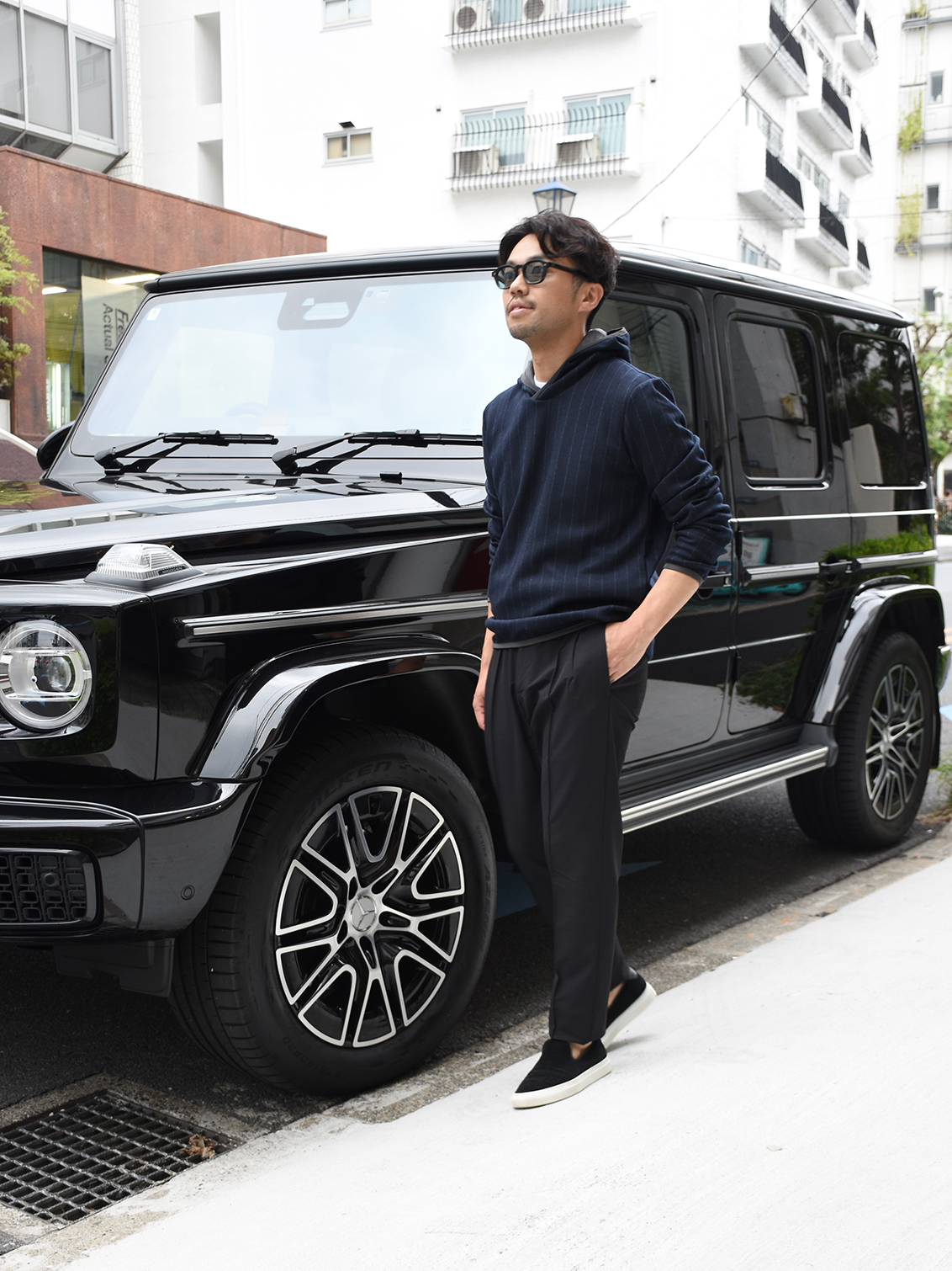 ドライブデートなど、もう少しカジュアルにキメたいときはこちらのコーデもオススメ。