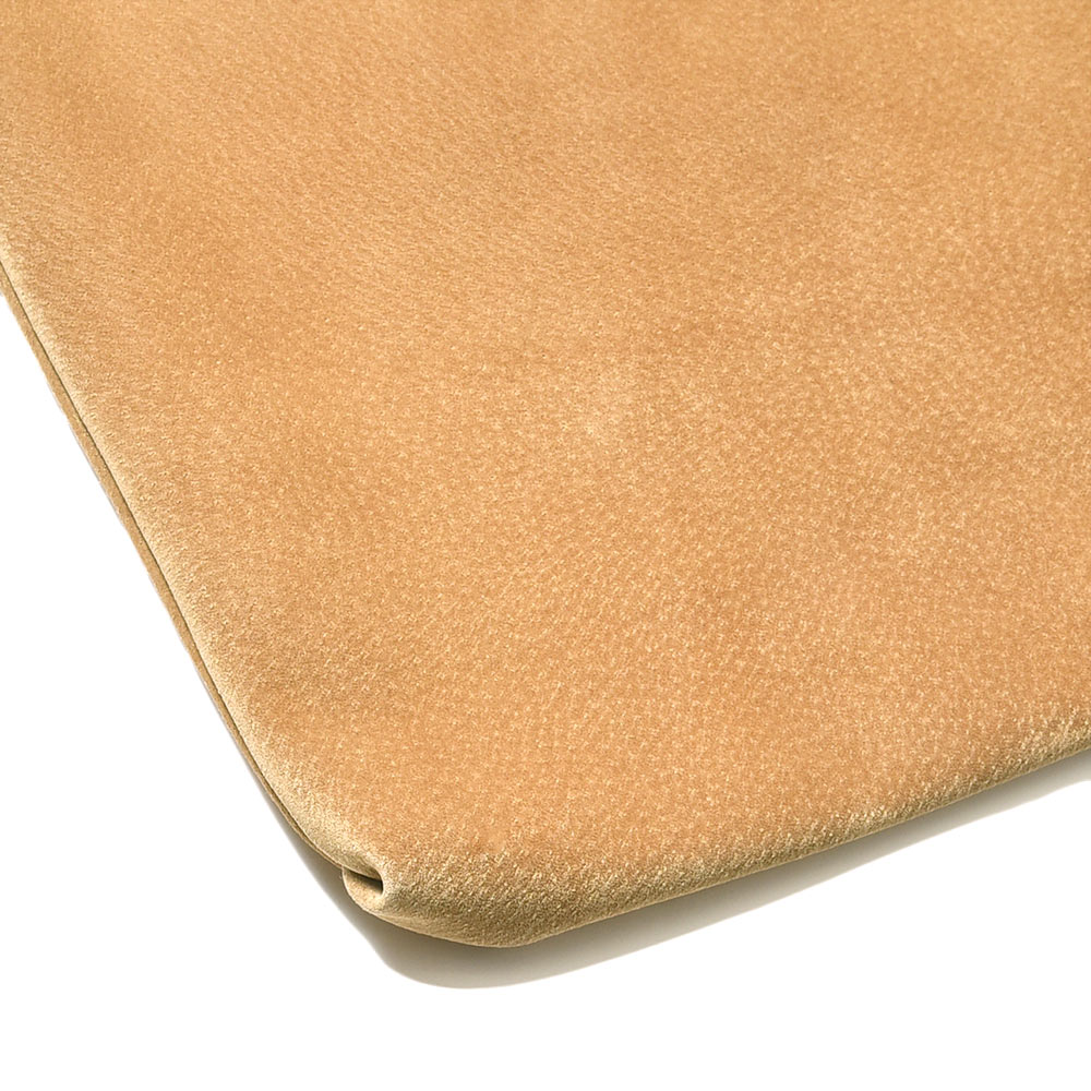 今シーズン登場したニューモデルの“TRAVESTA”は、ちょっとした外出に最適なecoバッグサイズ。しかしながら上質で発色の良いピッグレザーを使用することで、スタイリングに程よく重厚感を持たせてくれます。さらに、こちらの素材は突然の雨には嬉しい撥水仕様。染色時に撥水を染み込ませている為、撥水に加えてスエード特有の移染を防いでくれます。