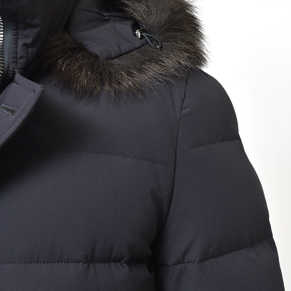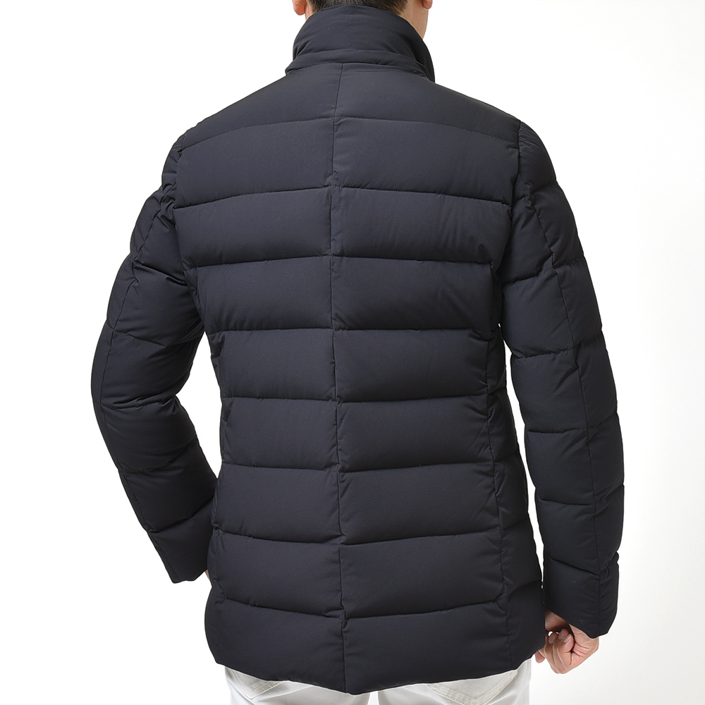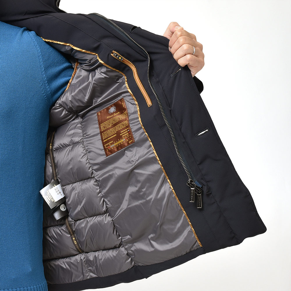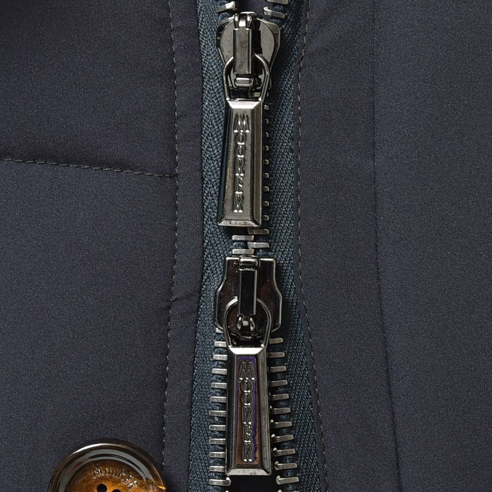 MOORERは最高のフィルパワーを誇るシベリア産の最高級ホワイトグースダウンを贅沢に使用。さらに、メタル製のジッパーと、ホーンボタンの二重の留め具によって、ダウンにとって必要不可欠な防寒性に隙はなく、かといって着膨れしないシルエットは秀逸としか言いようがありません。