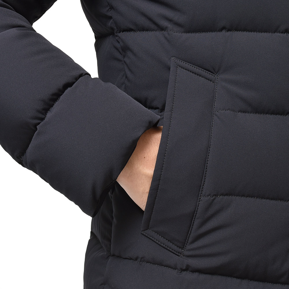 着脱可能なフードを搭載したシンプルなシングルブレストのダウンジャケットモデル“MORESCO”。フードを付けた状態だとスポーティーでタウンユースな顔に。また、フードを取り外せばオンタイムに対応できる顔つきに変わるカメレオンぶり。特注のファスナーに、裏地のナイロン素材の美しさ加えてパイピング処理を施した丁寧な仕上げ。また、しっとりとした質感に程よい光沢感を持ったこちらの生地は、ライトウエイトのストレッチナイロン素材を搭載することで抜群の着心地を実現しています。ファー部分はフードと一体化にており取り外すことはできません。