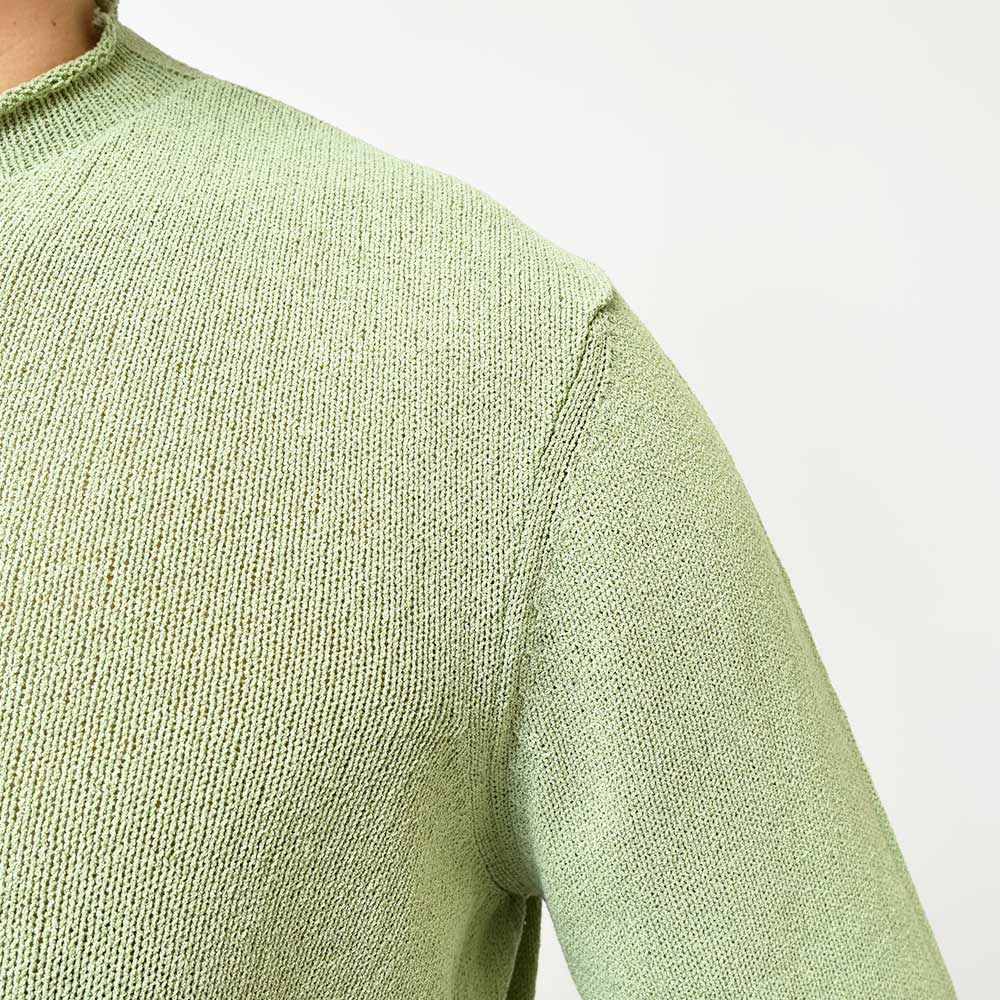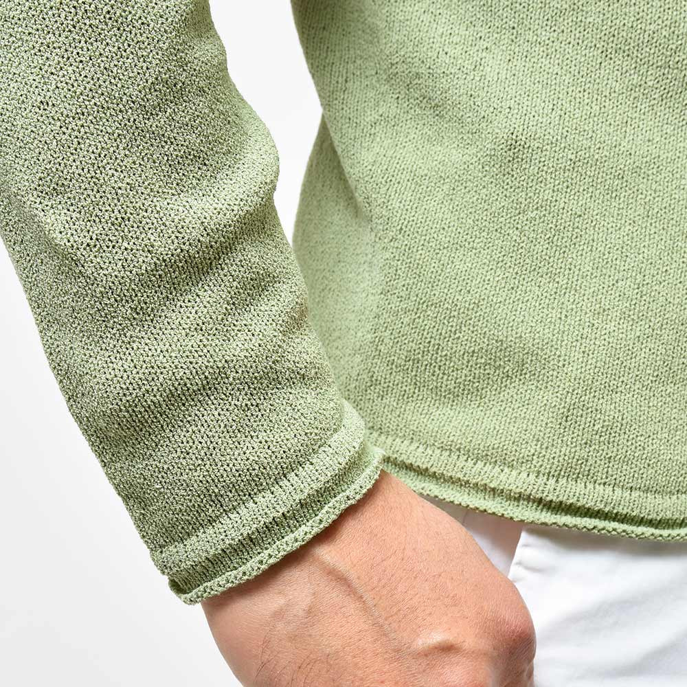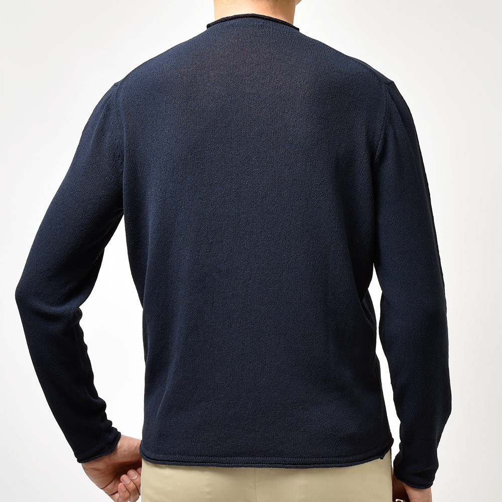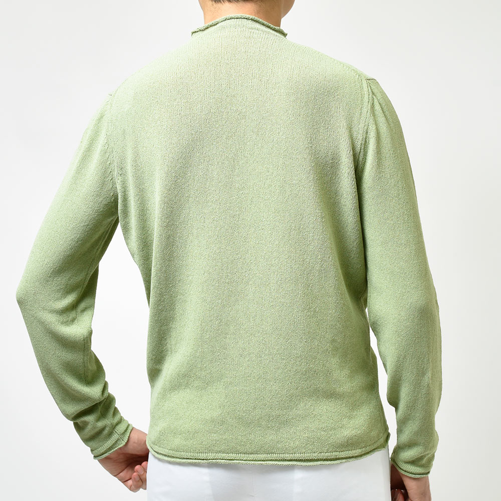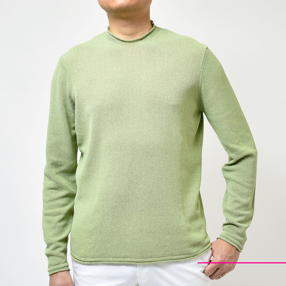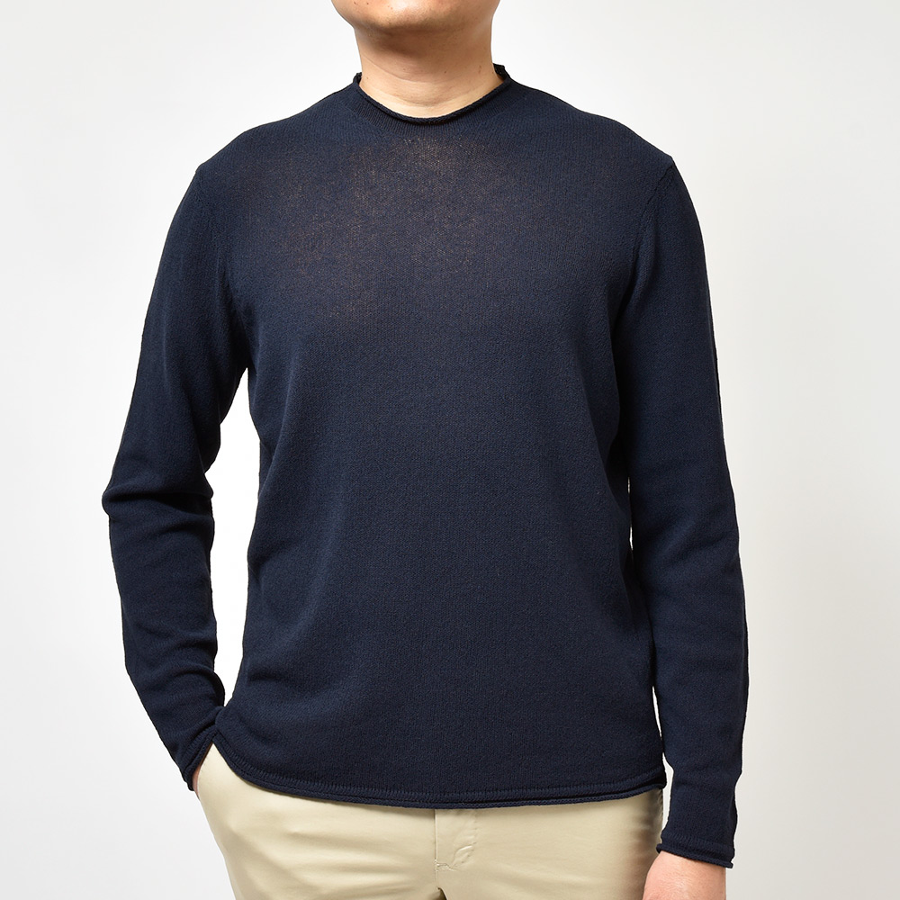 ジャケットやスーツだけには留まらないSTILE LATINOのコレクション。ヴィンチェンツォ氏自らセレクトしたこちらは、コットンの柔からさにナイロンを加えた少しマッドなタッチが特徴です。また、ザックリとした編み地ですので通気性にも優れており、長袖のサマーニットとしては打って付けな一品。ネック・裾・袖口はロールした仕様となっており、クルーネックやモックネックとはまた違ったモダンな雰囲気を醸し出します。