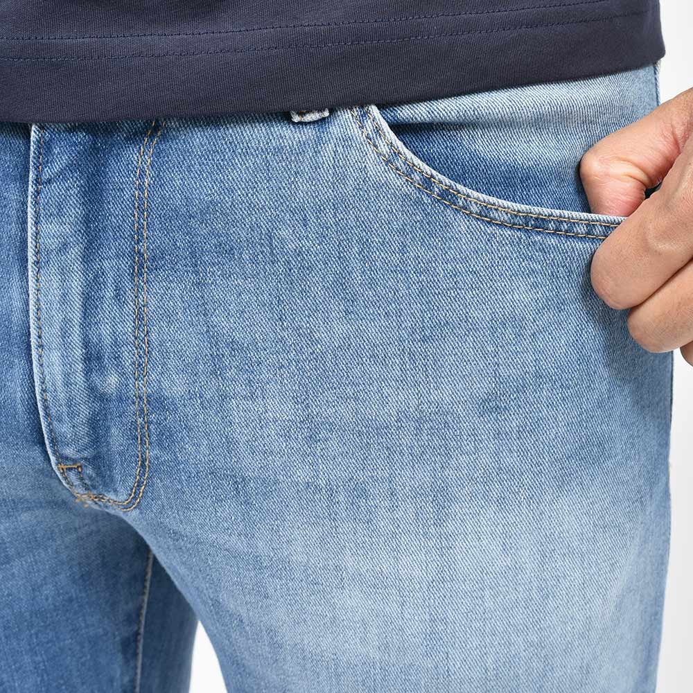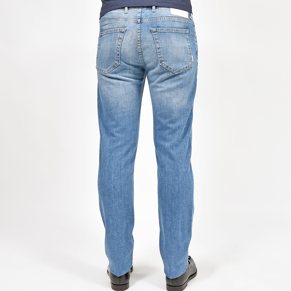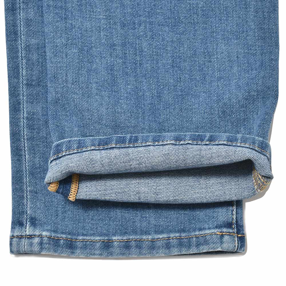 こちらは、ややライトなトーンのインディゴブルーに少しヴィンテージライクなアタリ感を施した爽やかさが香る一本。大人気の“Travel”シリーズに近い伸縮性に柔らかな質感のファブリックを使用していますので、その穿き心地は言わずもがなです。また、シルバーのボタン&リベットに、サスティナブルな紙素材の白いパッチが、上品でシックな大人の佇まいになります。