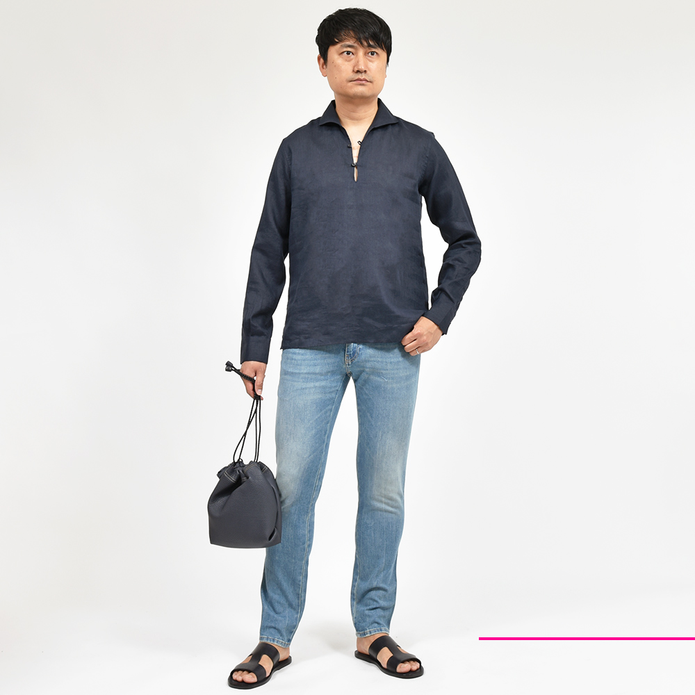季節感を持たせたスタイリングを意識するのであれば、こういったライトなトーンのデニムは春から初秋にかけて非常に便利な一本です。