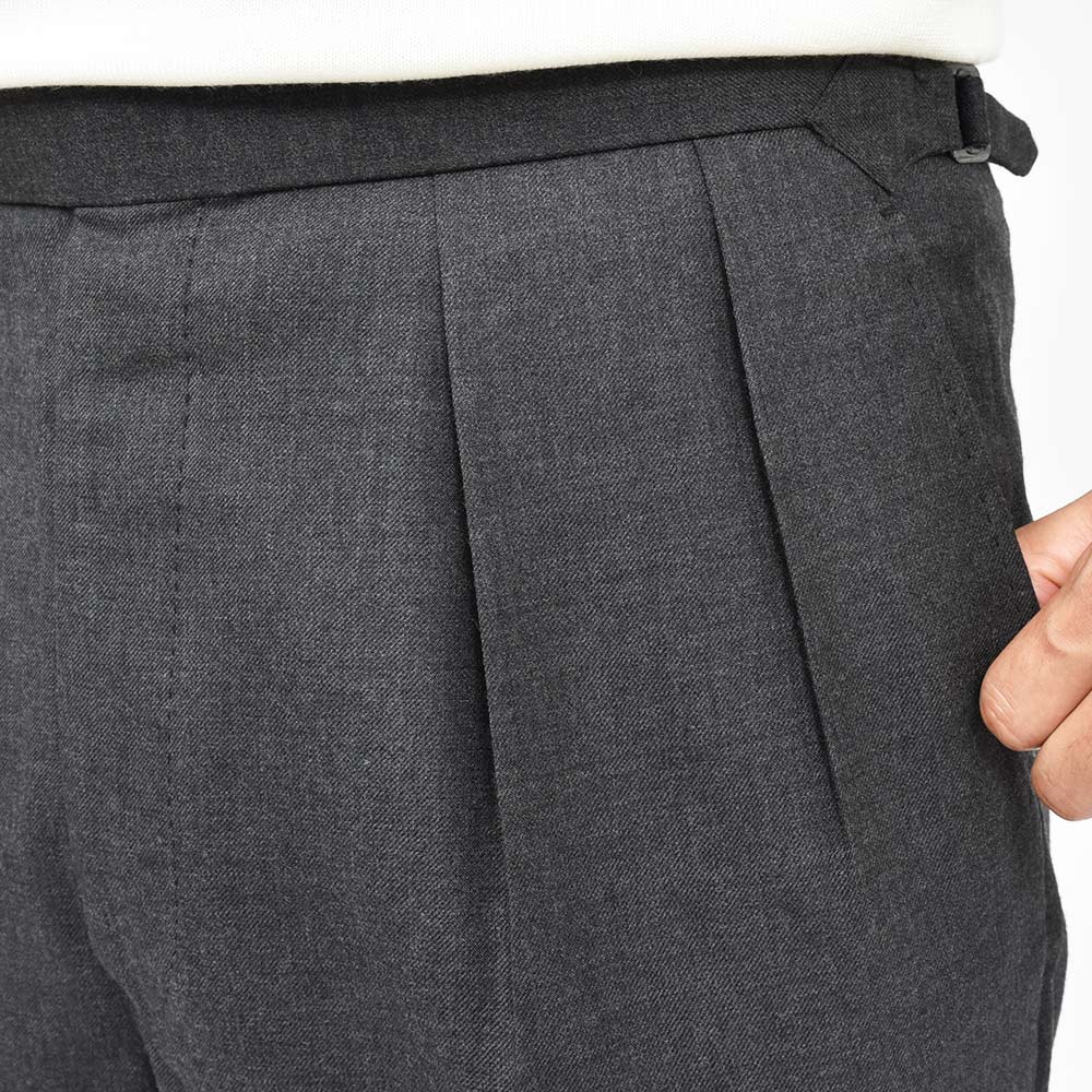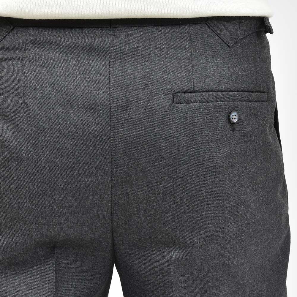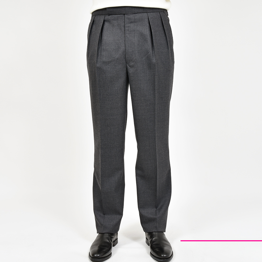 こちらのモデル“REGENT(リージェント)”は、ロンドン・ウエストエンドの中心である 「Regent Street」をイメージ。英国ビスポークのディテールでもある2インプリーツに、股上も深く設定せれた最もベーシックなモデルになります。ドレススタイルは勿論、カットソーやニットをタックインした、カジュアルなスタイルにも合わせることができます。